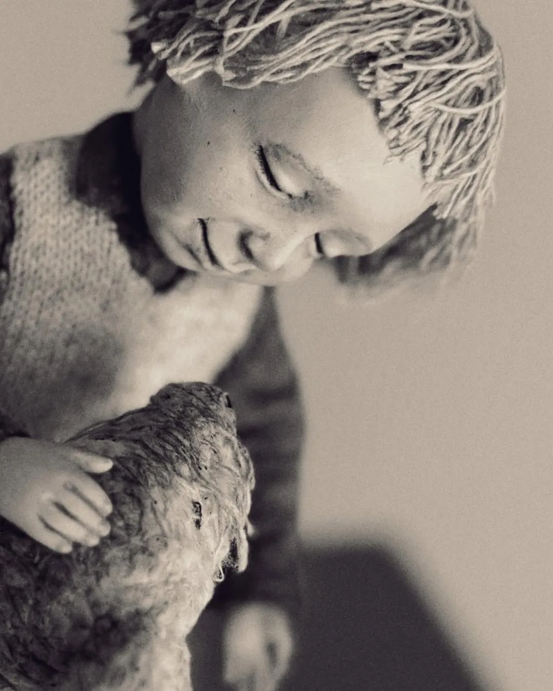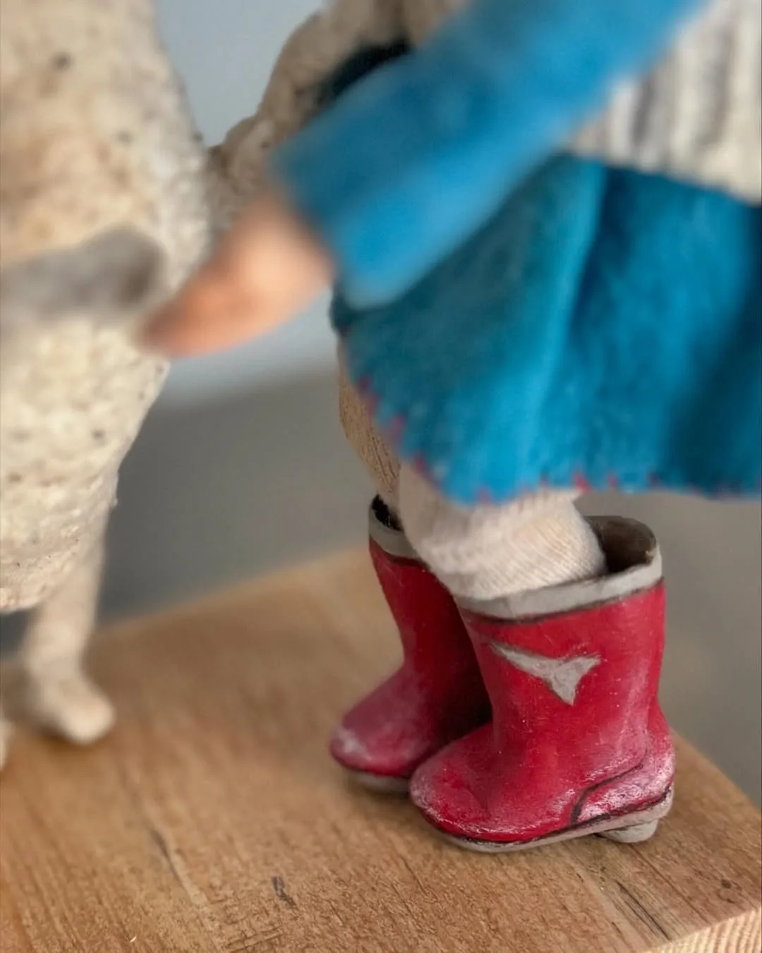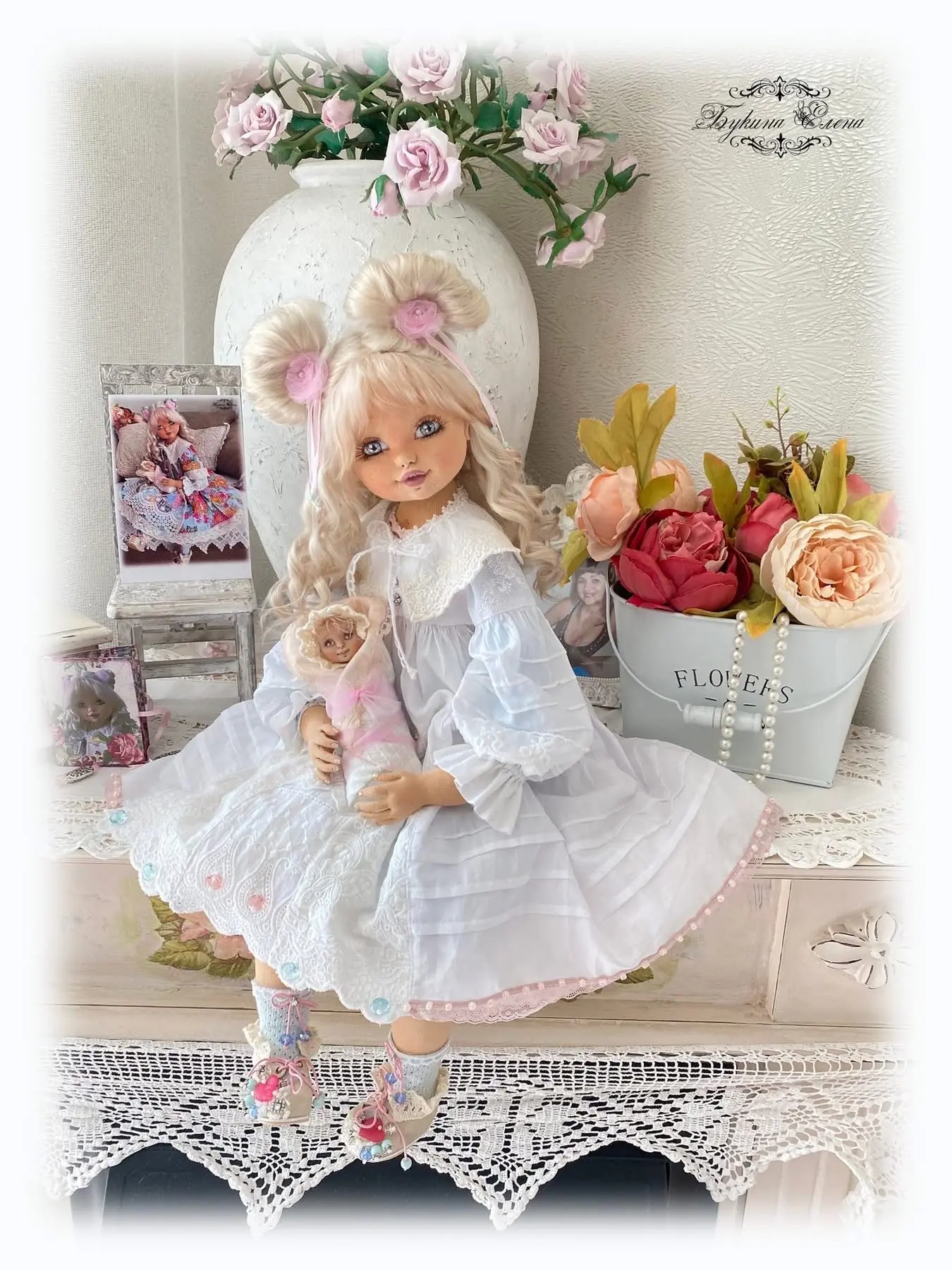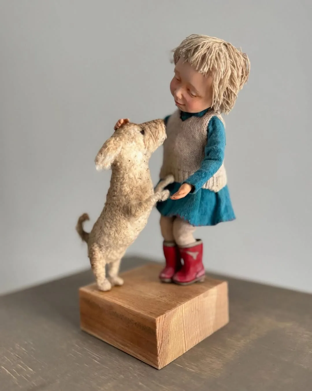 Ладолл, папье-маше, хлопок, художественное масло, масляная пастель, 23 см.