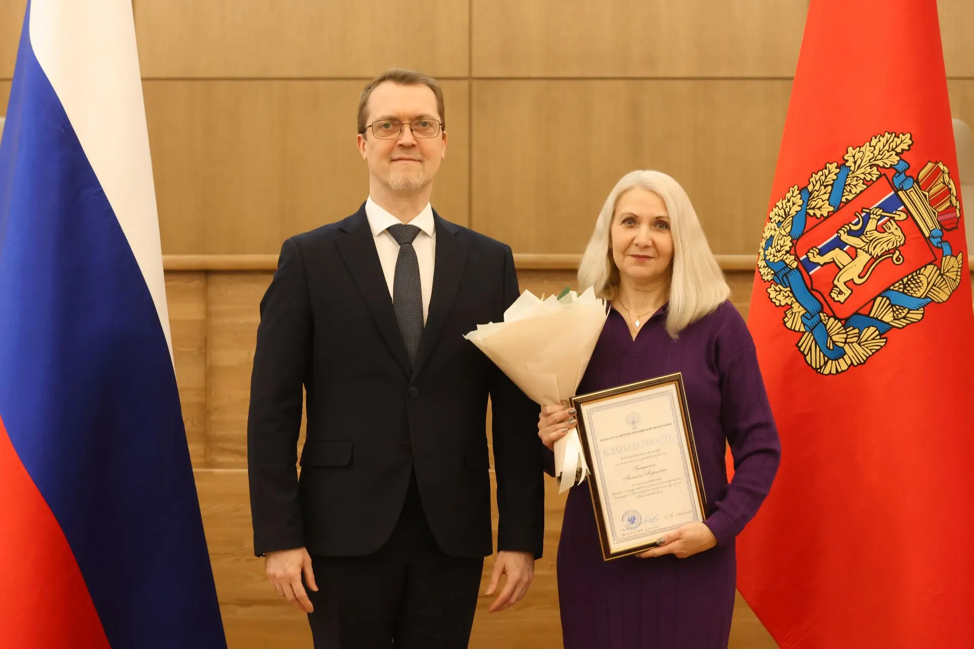 Сегодня Татьяне Борисовне Бандалет, которая много лет служит в театре ассистентом режиссера, министр культуры Красноярского края Аркадий Зинов вручил Благодарность министра культуры России за многолетнюю плодотворную работу и вклад в развитие культуры нашей страны.