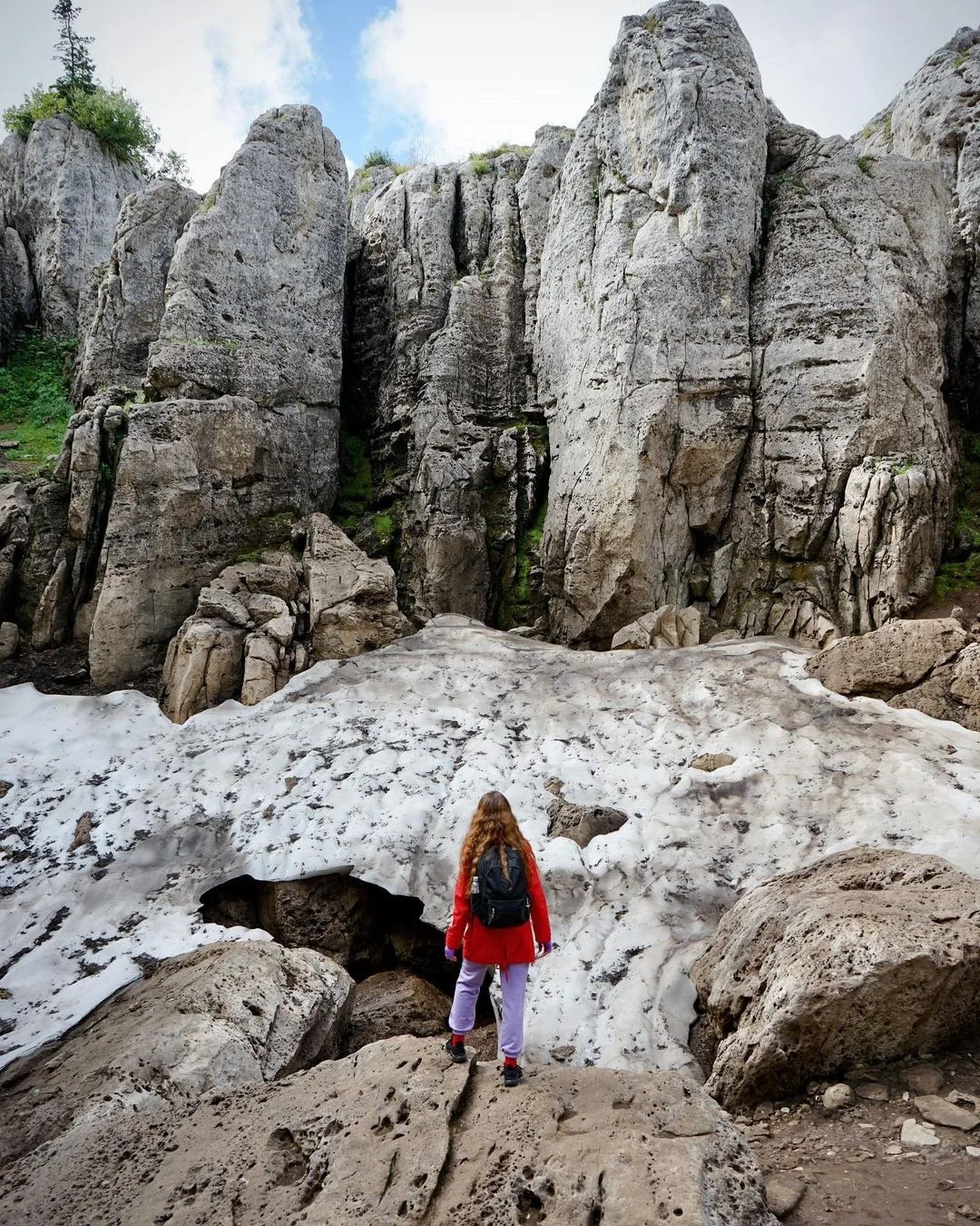 На поверхности хребта встречаются разного рода воронки, внутри которых до конца лета лежит снег а множество утесов вздымаются над землей словно штормовые волны – сглаженные или наоборот острые как пики.