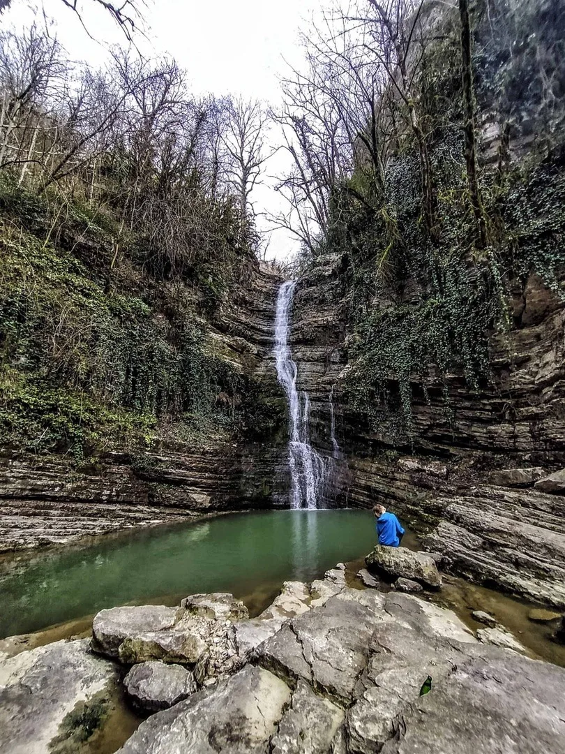 Конечно, если вы хотите застать Водопад во всей его красе, лучше всего посещать его весной или после затяжных дождей, но меня абсолютно не смутило отсутствие мощного потока. Кстати, Глубокий Яр является одним из самых высоких Краснополянских водопадов (42 метра).