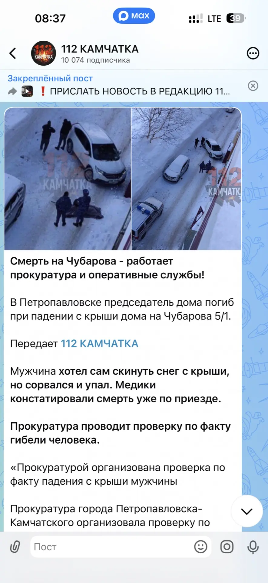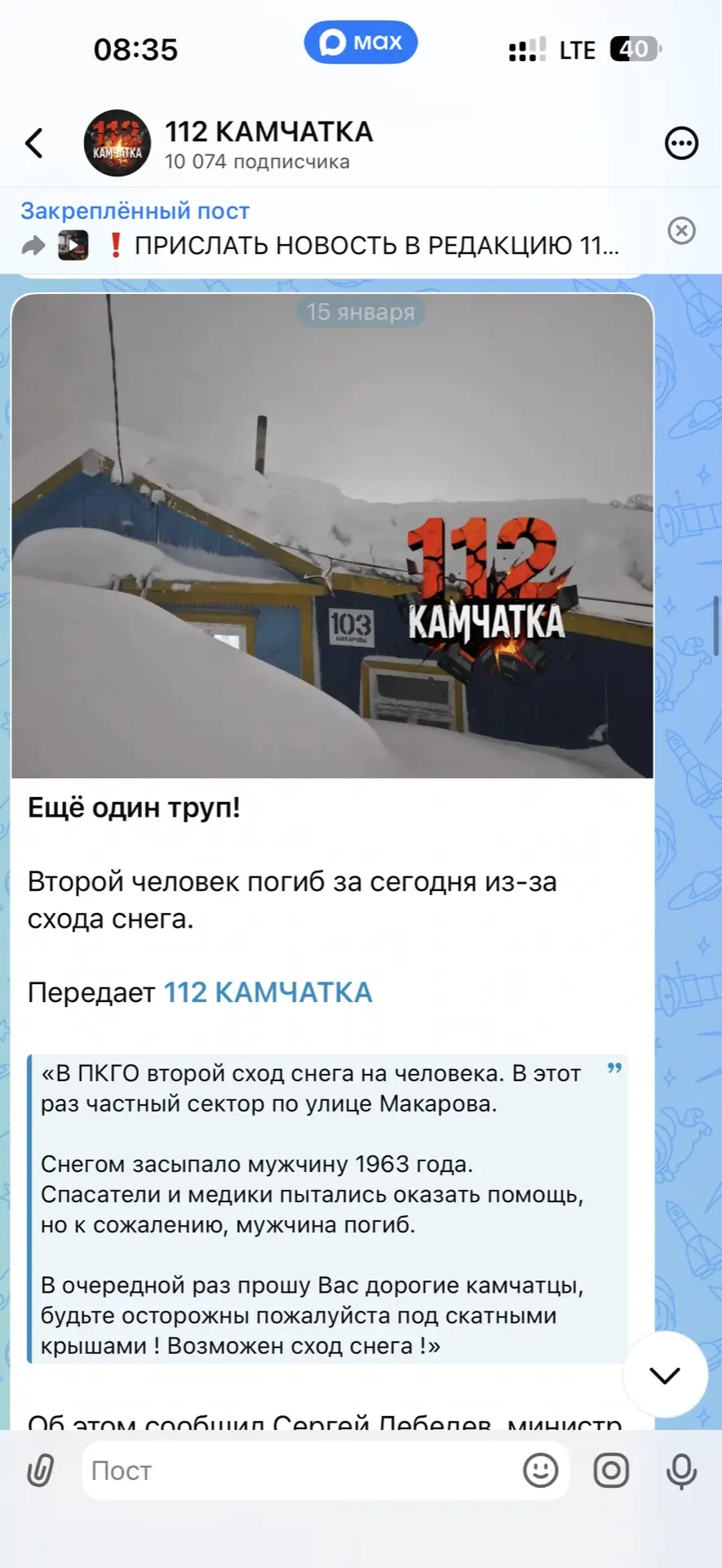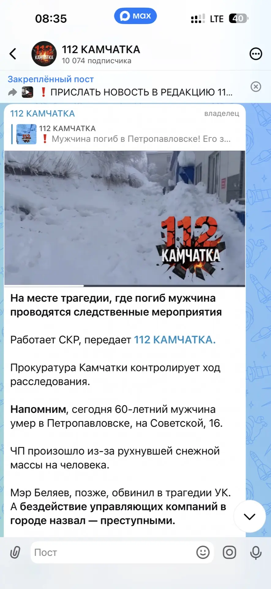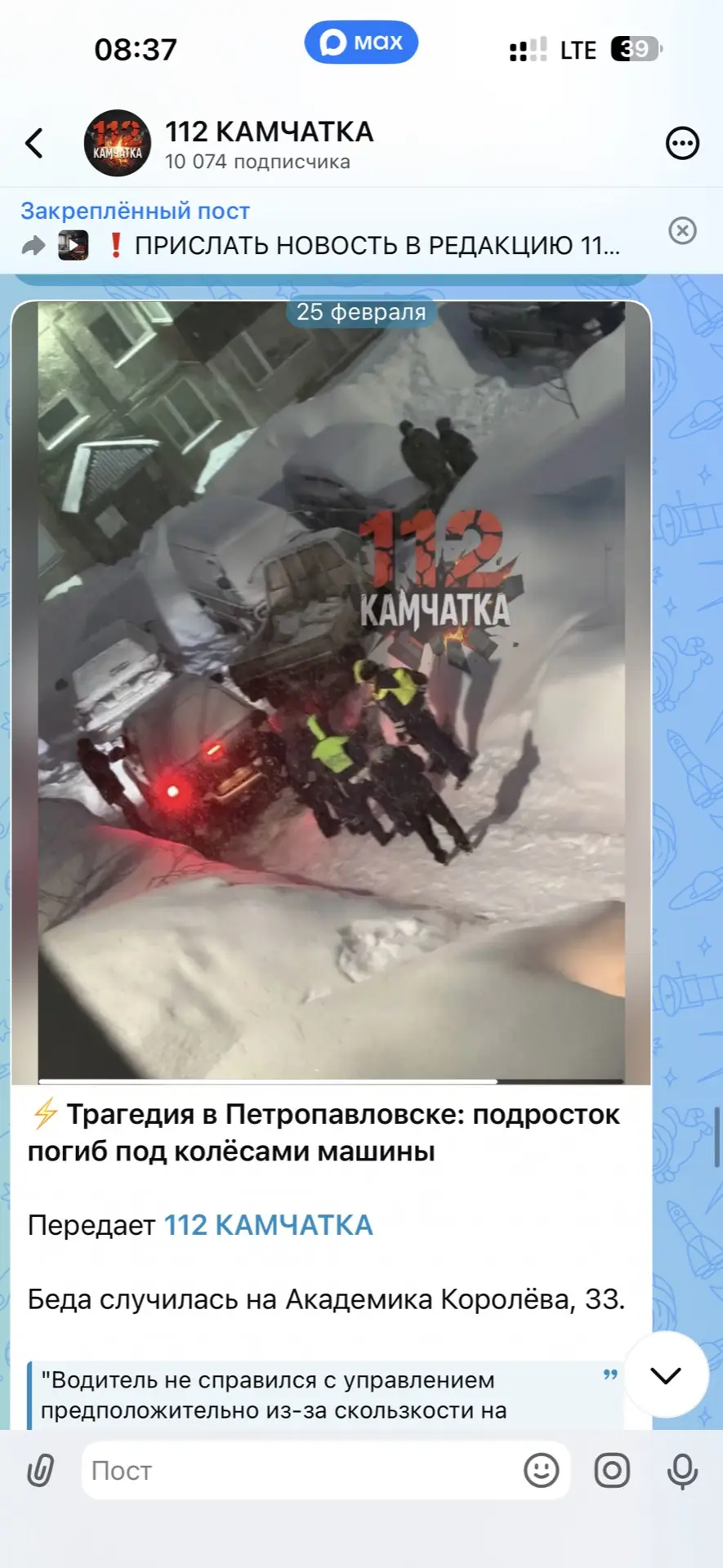 Об этом сообщил читатель 112 КАМЧАТКА