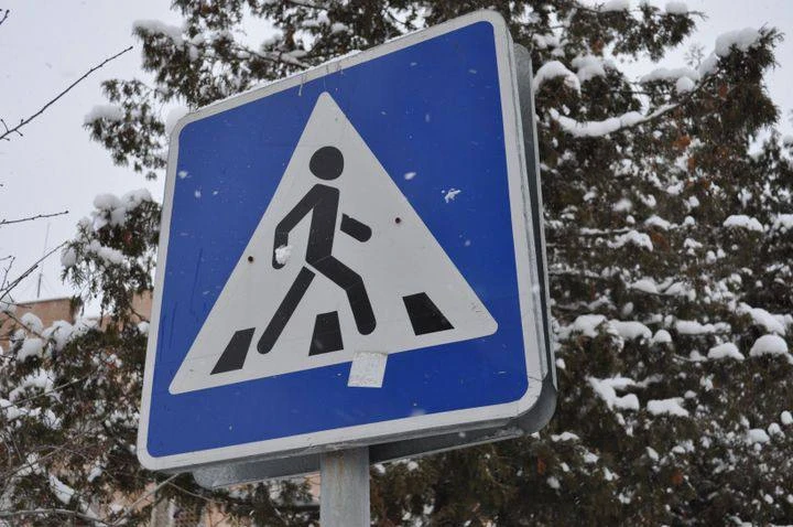🔵Если вы везёте санки с ребёнком по тротуару, перед пешеходным переходом остановитесь, пусть ребёнок встанет с саней, возьмите его за руку и только так переходите через дорогу.