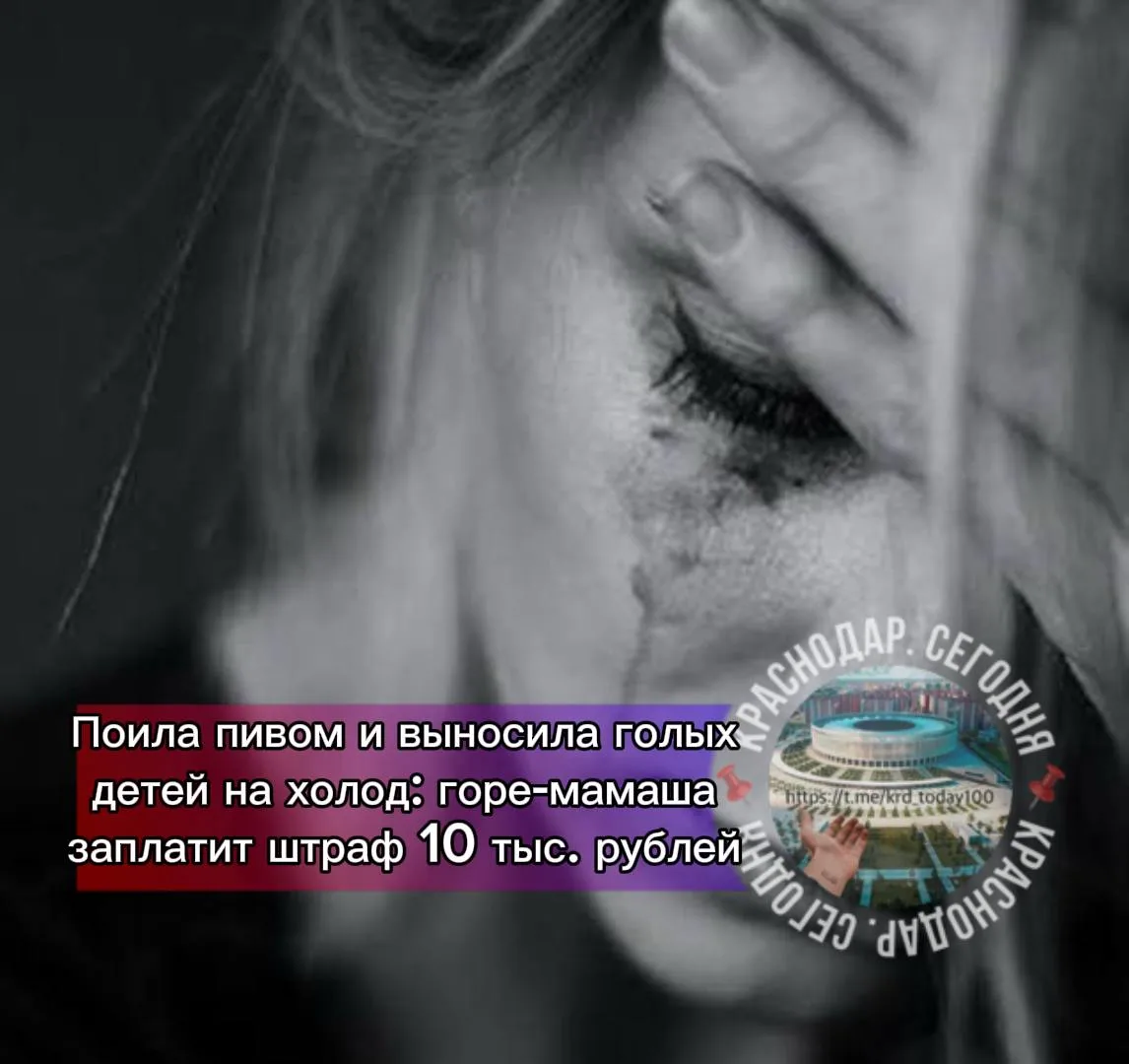 🗣Поила пивом и выносила голых детей на холод: горе-мамаша заплатит штраф 10 тыс. рублей