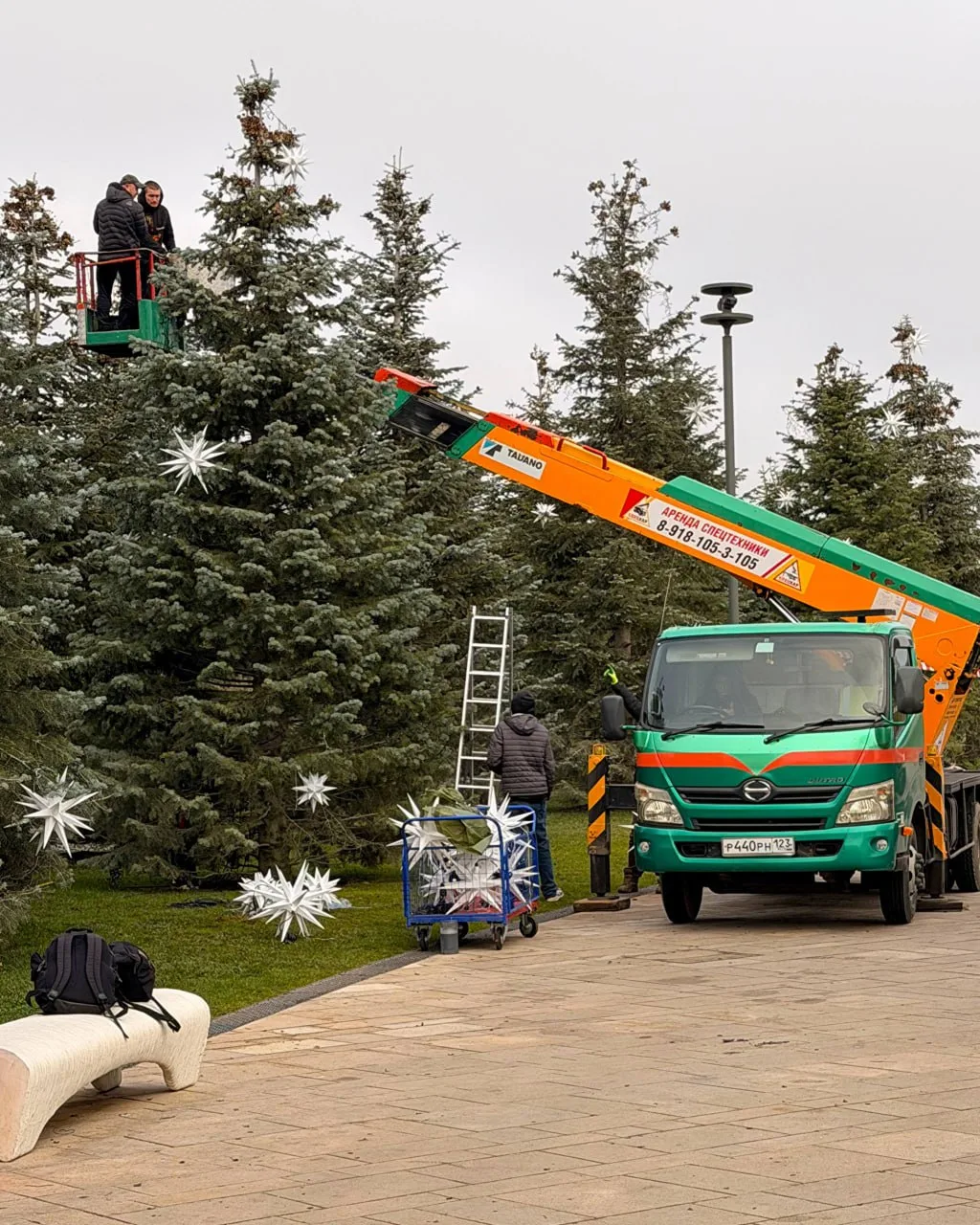 Отметим, работы по созданию новогоднего настроения в парке продолжается.