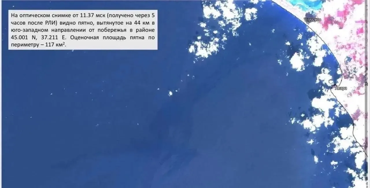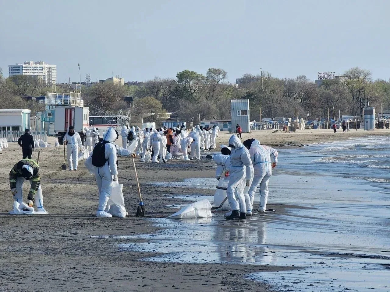 В оперштабе Краснодарского края не исключают, что разлив мог произойти после атак дронов на гражданские суда в Чёрном и Азовском морях. Экологи продолжают следить за ситуацией.