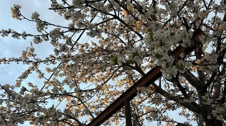 В Краснодаре у трамвайных путей на Ставропольской зацвели яблони.