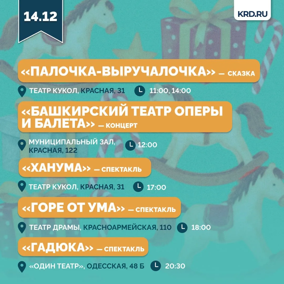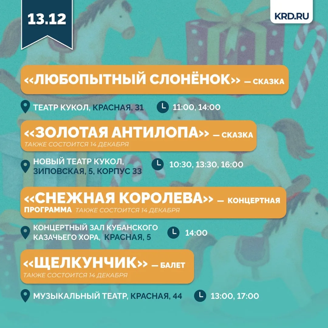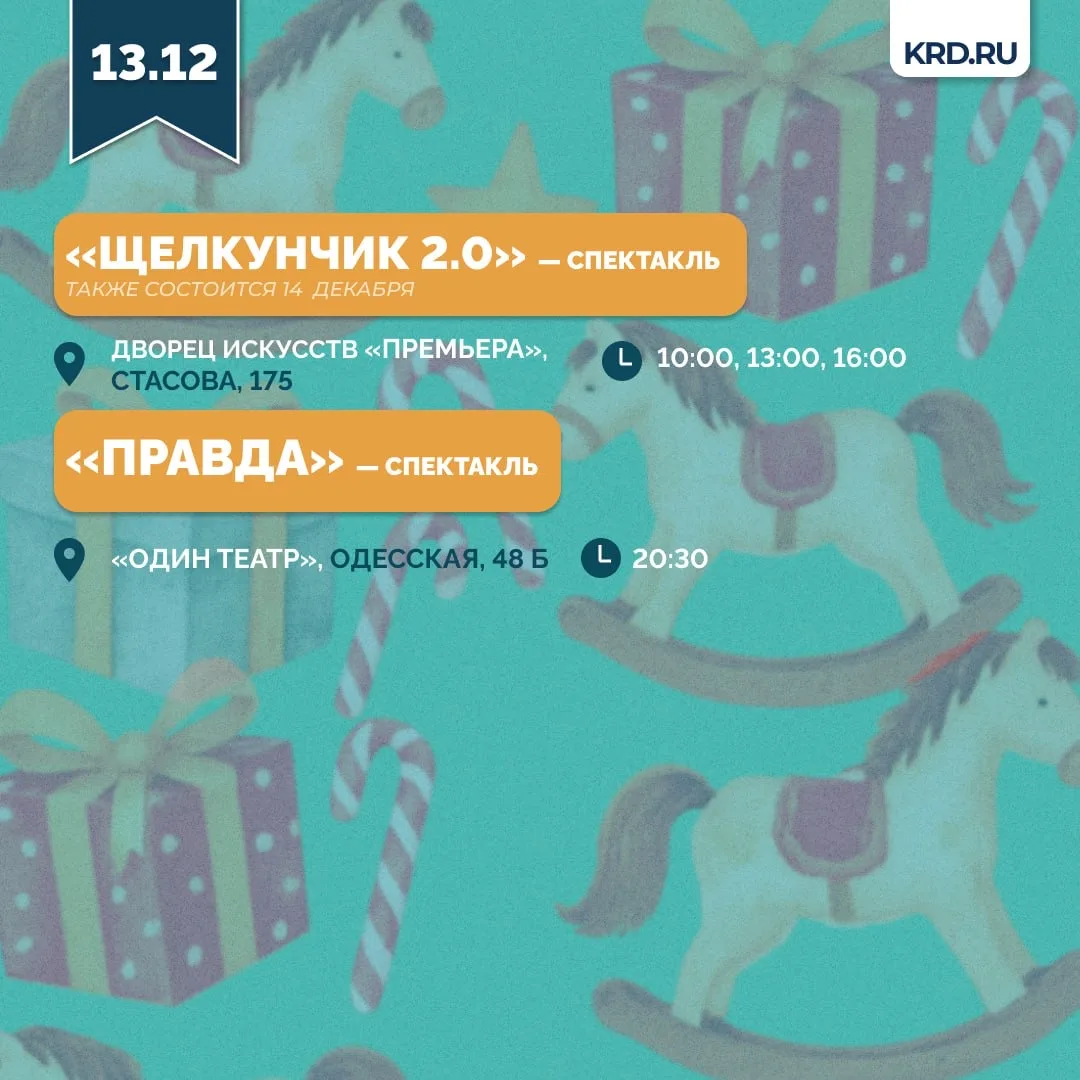 Балет, концерты и спектакли уже подготовили краснодарские театры для жителей и гостей города. Программа мероприятий — в наших карточках.