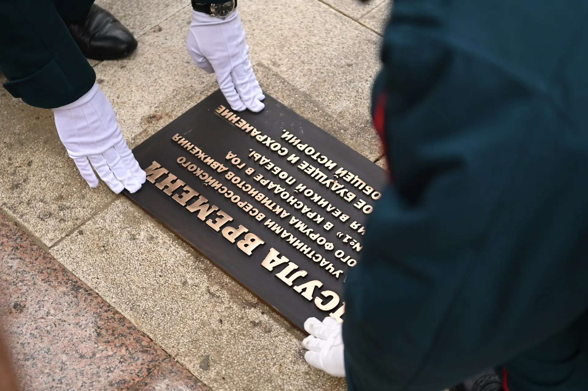 Собравшиеся возложили цветы и венки к мемориалу павшим героям локальных войн и вооружённых конфликтов.