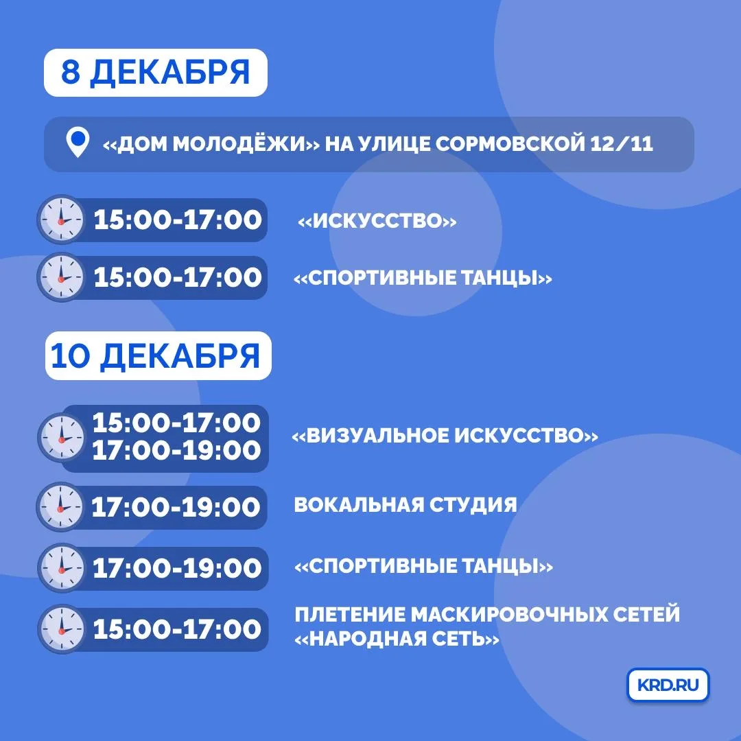 Каждый сможет попробовать себя в студии вокала, секции плетения маскировочных сетей, занятиях