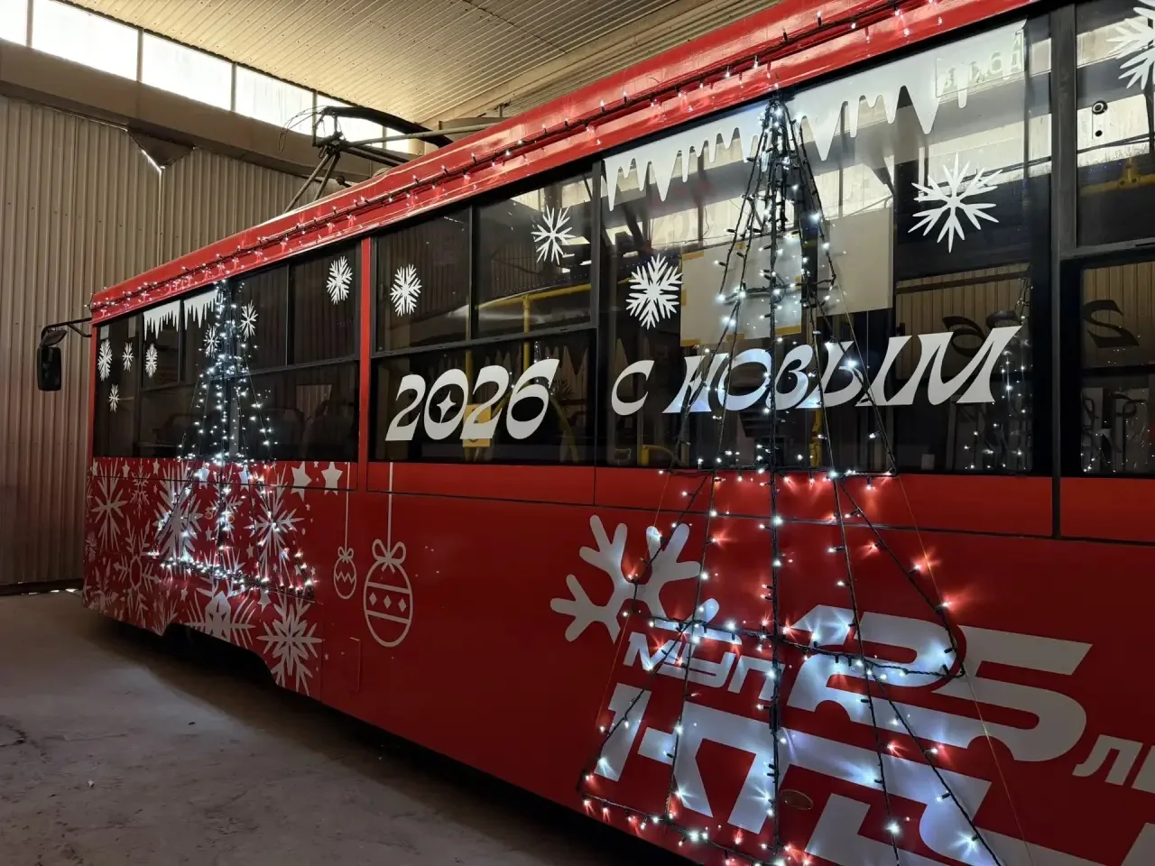 ❄️Два трамвая, два троллейбуса и один автобус проработают на городских маршрутах до 18 января включительно. Сотрудники Краснодарского трамвайно-троллейбусного управления украсили транспорт гирляндами, наклейками, игрушками и надписями «С Новым годом».