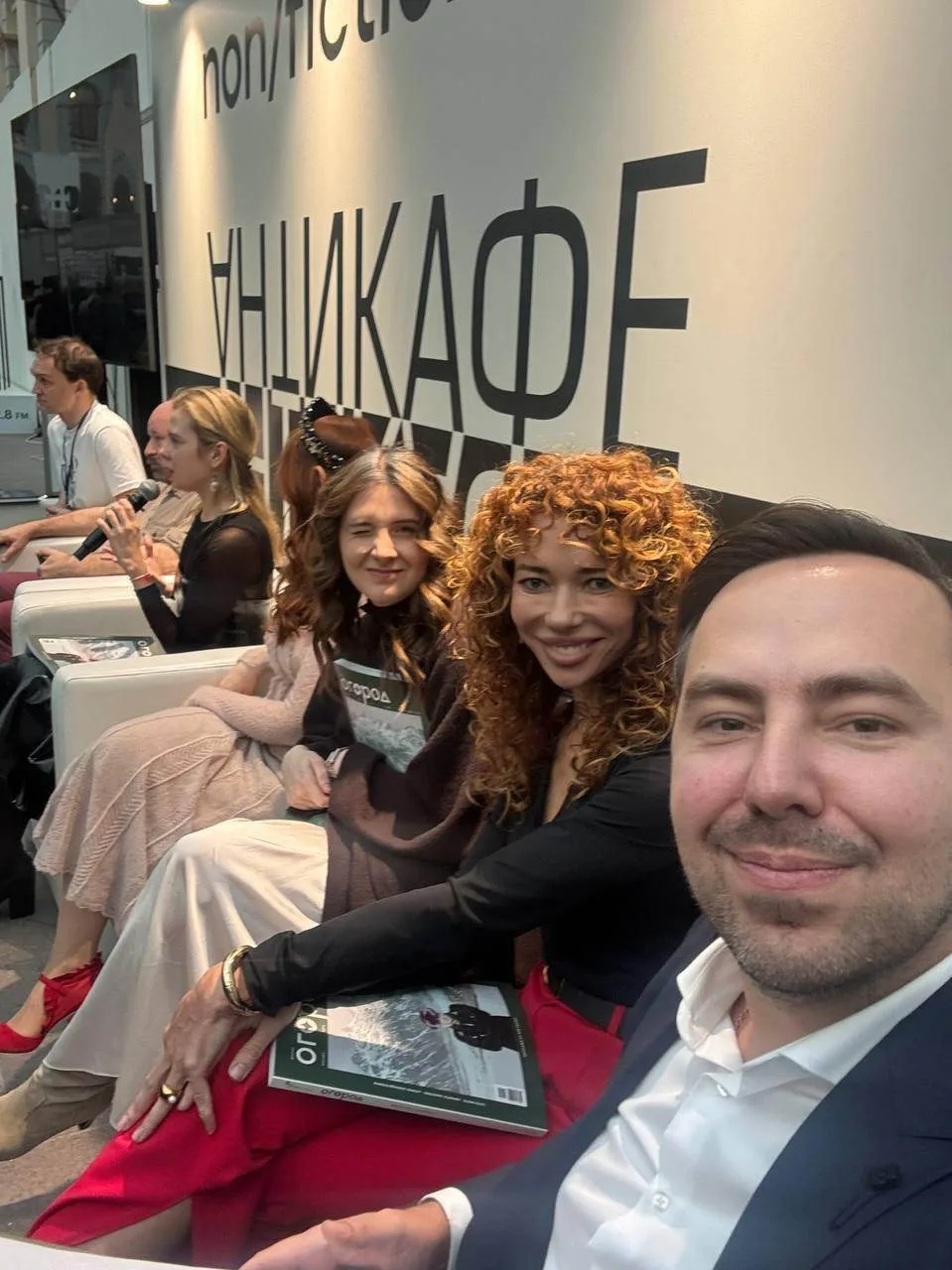 И ещё был стол — по-настоящему большой, таким его вспоминаешь, когда думаешь о домашних праздниках. Писатели, интеллектуалы, друзья, читатели, светская Москва: Дарина Алексеева, Виктория Шелягова, Марианна Максимовская, Снежанна Георгиева, Катя Мухина, Юлия Рубан, Юлия Коломиец, Маша Моргун, Виктория Манасир, Анна Попова, Вадим Ветерков и другие.