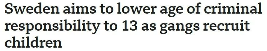 Швеция всерьез обсуждает снижение возраста уголовной ответственности до 13 лет для тяжких преступлений. Правительство страны заявляет, что преступные группировки массово используют подростков, пользуясь их фактической безнаказанностью.