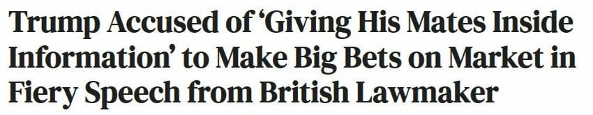 Британский парламентарий обвинил Трампа в передаче инсайдерской информации для совершения крупных ставок на рынке. Открыли глаза. А реклама криптопроектов на военных парадах и запуск трампкоинов это чего, шутка? Но будет иронично, если мир погибнет из-за крупной ставки против ядерной войны.