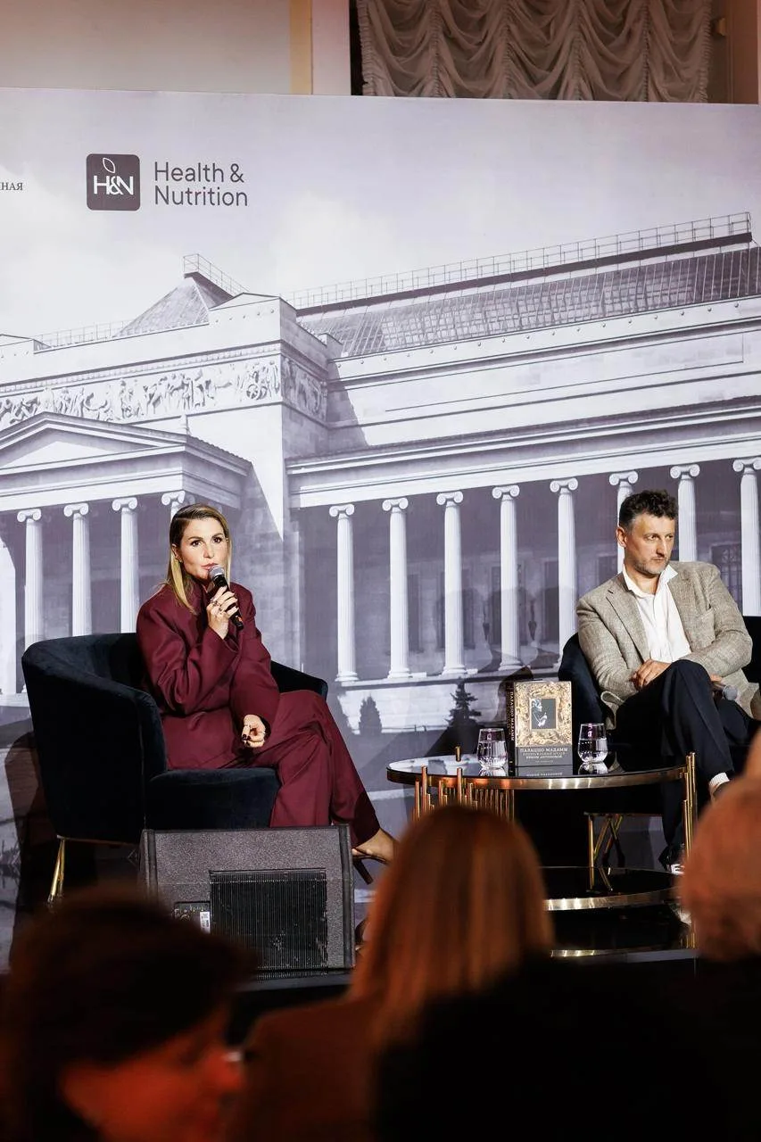 «Ленинка — это уникальное место со своей историей и атмосферой, культурный символ России. Поэтому символично, что именно здесь сегодня мы встречаемся со Львом Данилкиным, чтобы поговорить о его новой книге и ее героине — легендарном директоре Пушкинского Ирине Антоновой. Удивительной женщине, без которой невозможно представить современную российскую культуру. Хочу сказать огромное спасибо всем за мою причастность к сегодняшнему событию и хотел бы, чтобы он стал началом проекта «Клуб друзей Ленинки». Вот полностью эмоционально солидарна в этих словах с Русланом Алисултановым, председателем совета директоров Health & Nutrition .