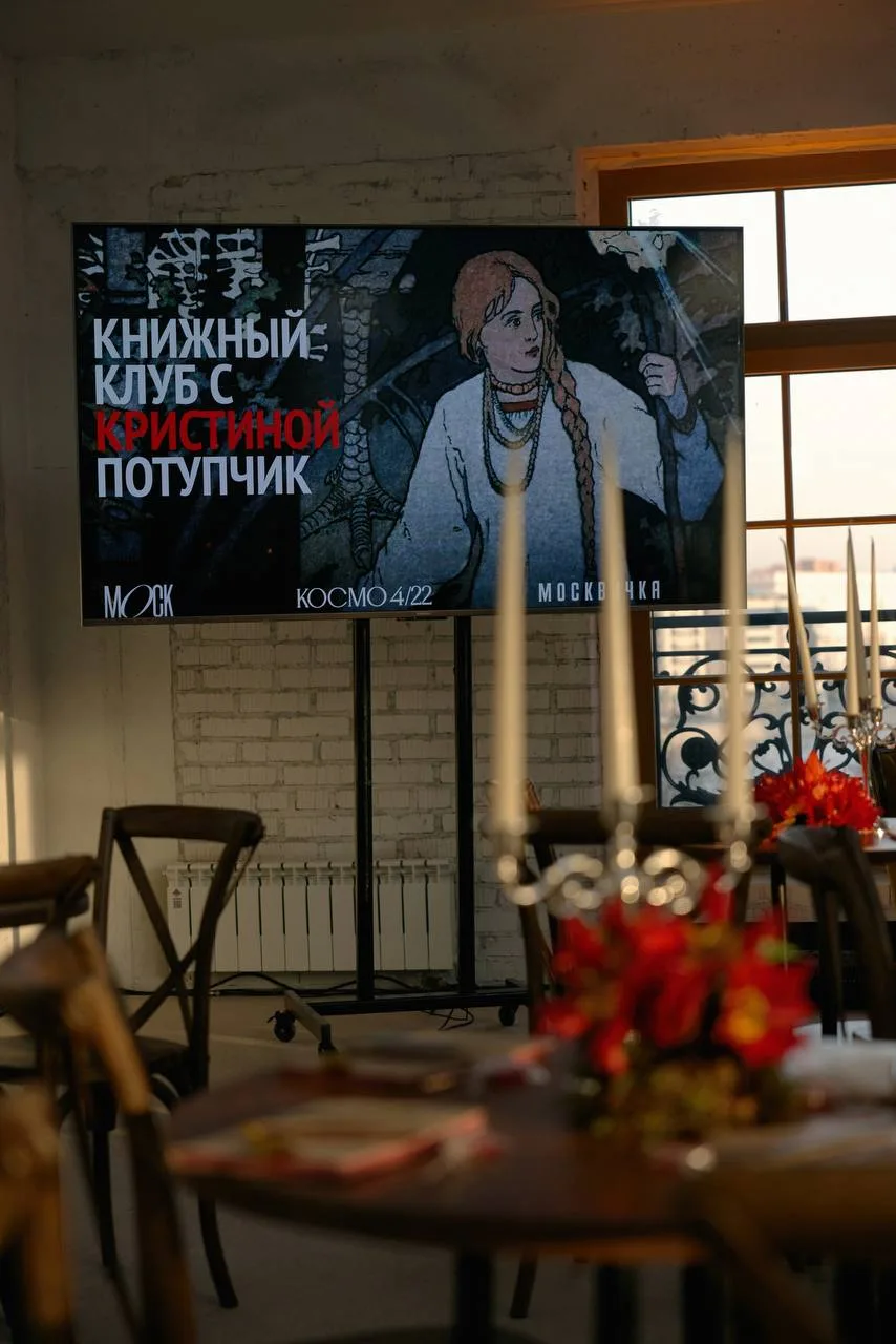 Вчера с Машей Кислицыной провели книжный клуб в рамках нашего МОСК. Собирались не где-нибудь, а в пентхаусе «Космо 4/22», так что сидели с шиком. Книжки вообще надо в шикарных местах обсуждать, потому что они сами по себе — роскошь. Тема была — волшебные сказки и закодированные в них смыслы. Обсудили, кто такие кикиморы, прокленыши, выколотки (меня, кстати, так бабушка называет), и прочую нечисть. Поговорили о том, почему золотое яйцо — это черная метка, кутья — трупное сало, зачем вести дочь на убой в мороз, ну и об атрибутах сексуальности Бабы-яги.