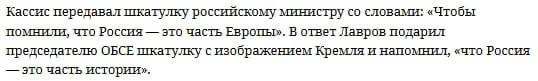 Вот так отменяешь русскую культуру, а потом берешь и даришь музыкальную шкатулку с Чайковским. Впрочем, у нас-то никто ни о чем не забывал.