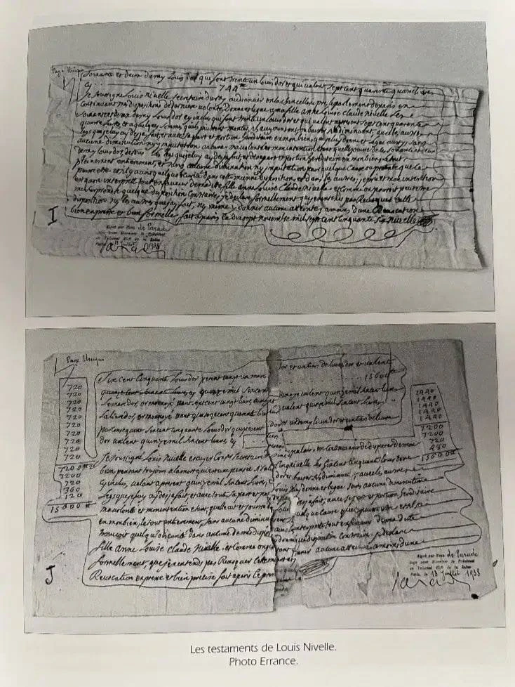 Находка сопровождалась официальными документами — завещаниями некоего Луи Нивеля, советника короля. Он хотел оставить состояние своей дочери, но скоропостижно скончался, так и не раскрыв тайну. Однако главные вопросы оставались: почему он хранил золото в чужом доме и какова его связь с этим местом?