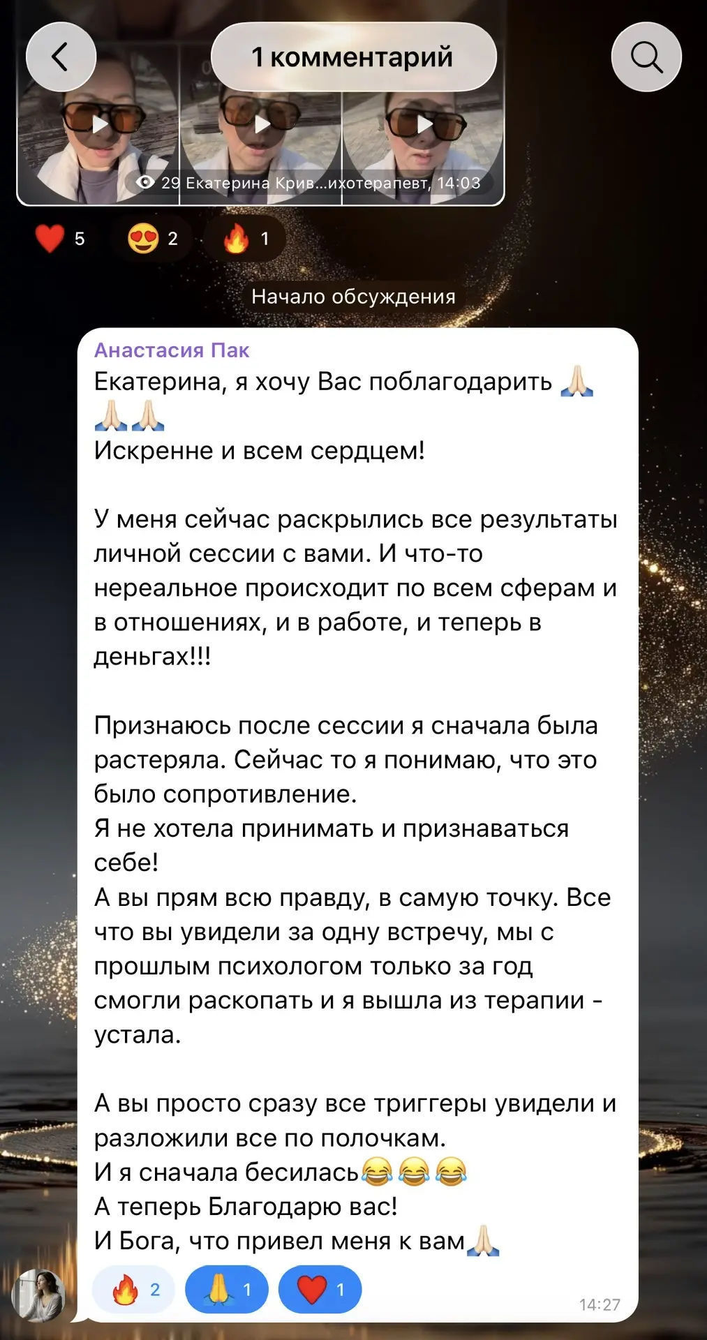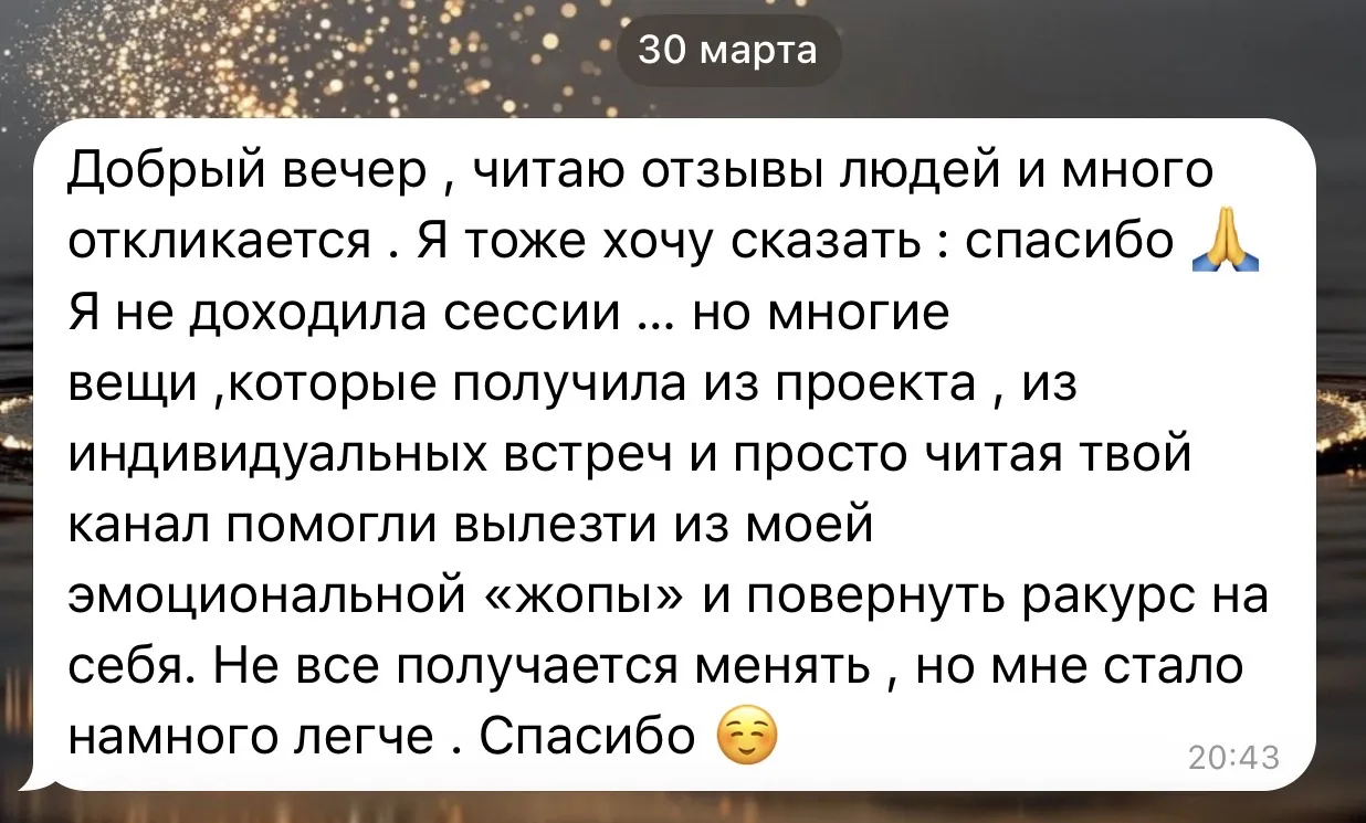 Итог: ответы и инсайты получены, чувство облегчения и воодушевления прожито.