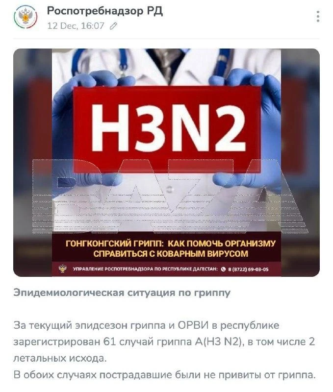 Два человека умерли от последствий гонконгского гриппа в Дагестане, сообщил Роспотребнадзор. Но вскоре удалил эту информацию из поста.