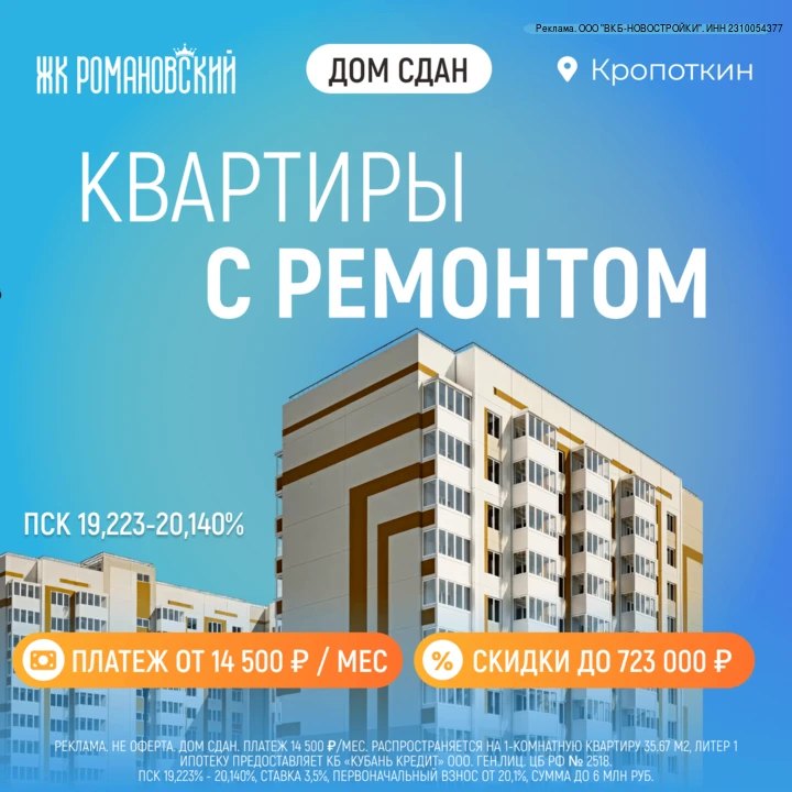 🏠 ЖК «Романовский» - 9-этажный дом в экологически чистом микрорайоне Кропоткина: