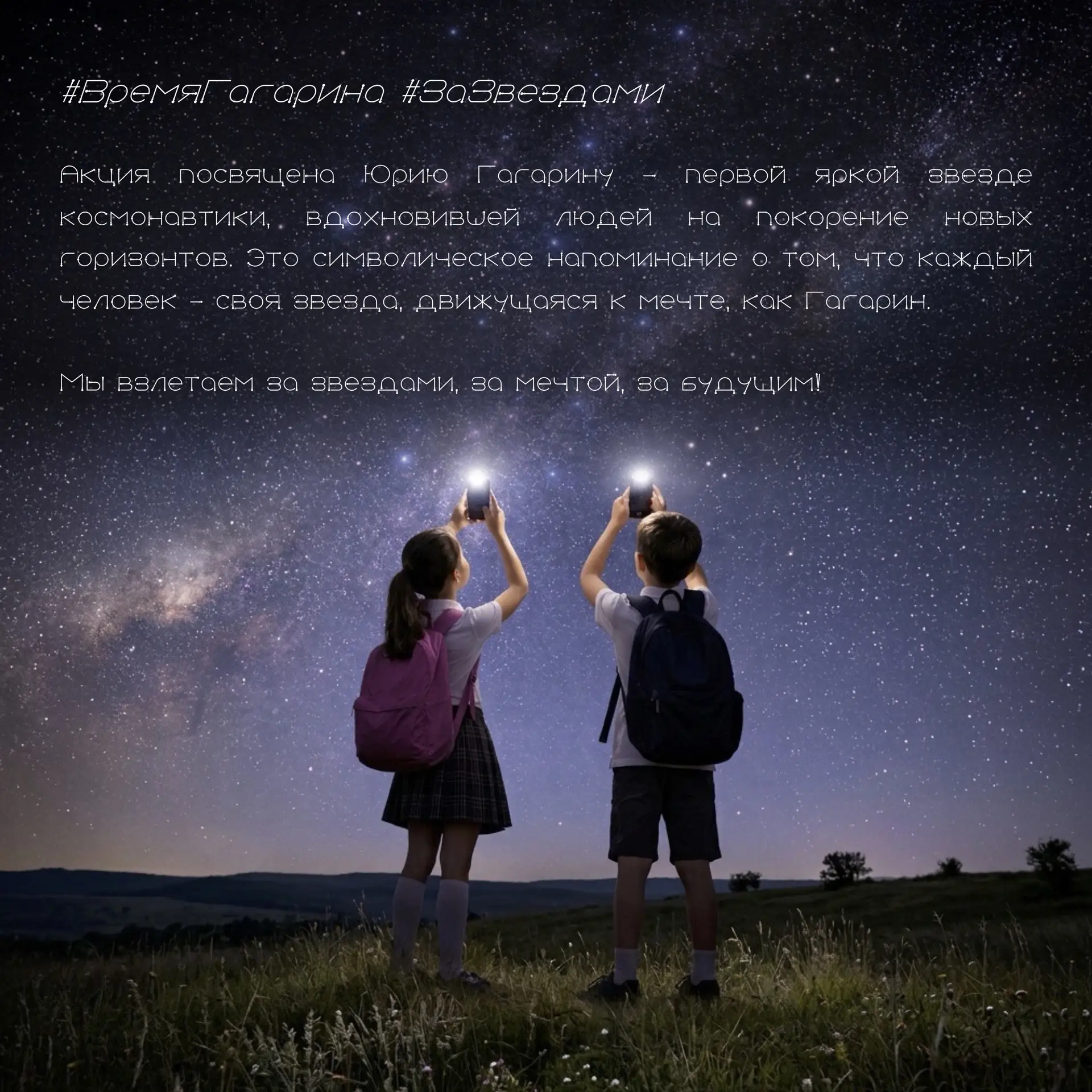 Присоединяйтесь к флешмобу #ВремяГагарина #ЗаЗвёздами и продолжайте дело первого человека в космосе — вдохновляйте других верить в невозможное 🚀