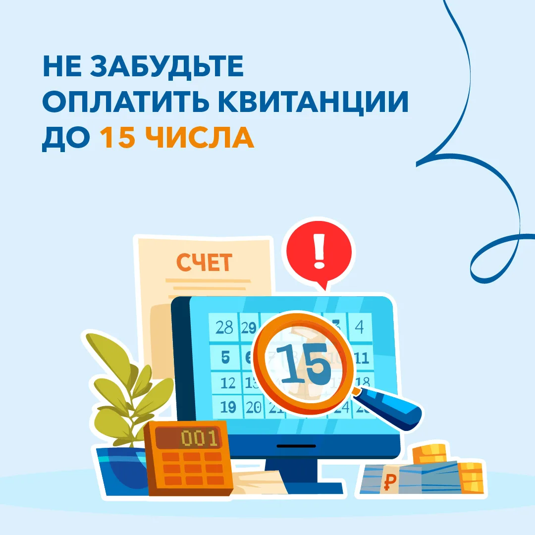Благодарим всех, кто оплачивает счета вовремя. Напоминаем, что срок оплаты электроэнергии и иных жилищно-коммунальных услуг – 15-е число каждого месяца.