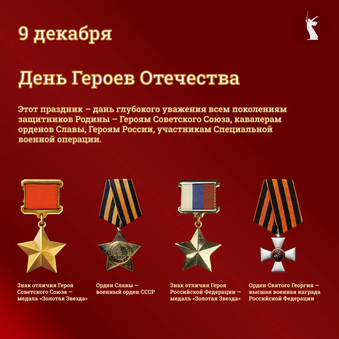 Этот праздник - дань уважения к тем, кто удостоен самых почетных государственных наград – званий Героев Советского Союза, Российской Федерации, орденов Славы и Святого Георгия.