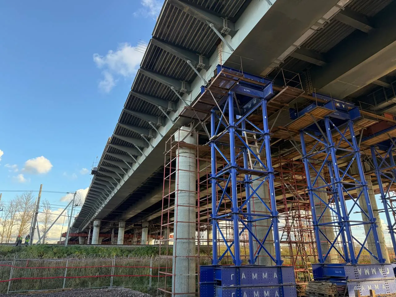 ✅В ноябре специалисты закончили бетонирование пролета на путепроводе над ж/д путями Витебского направления, его готовность составляет 80%.