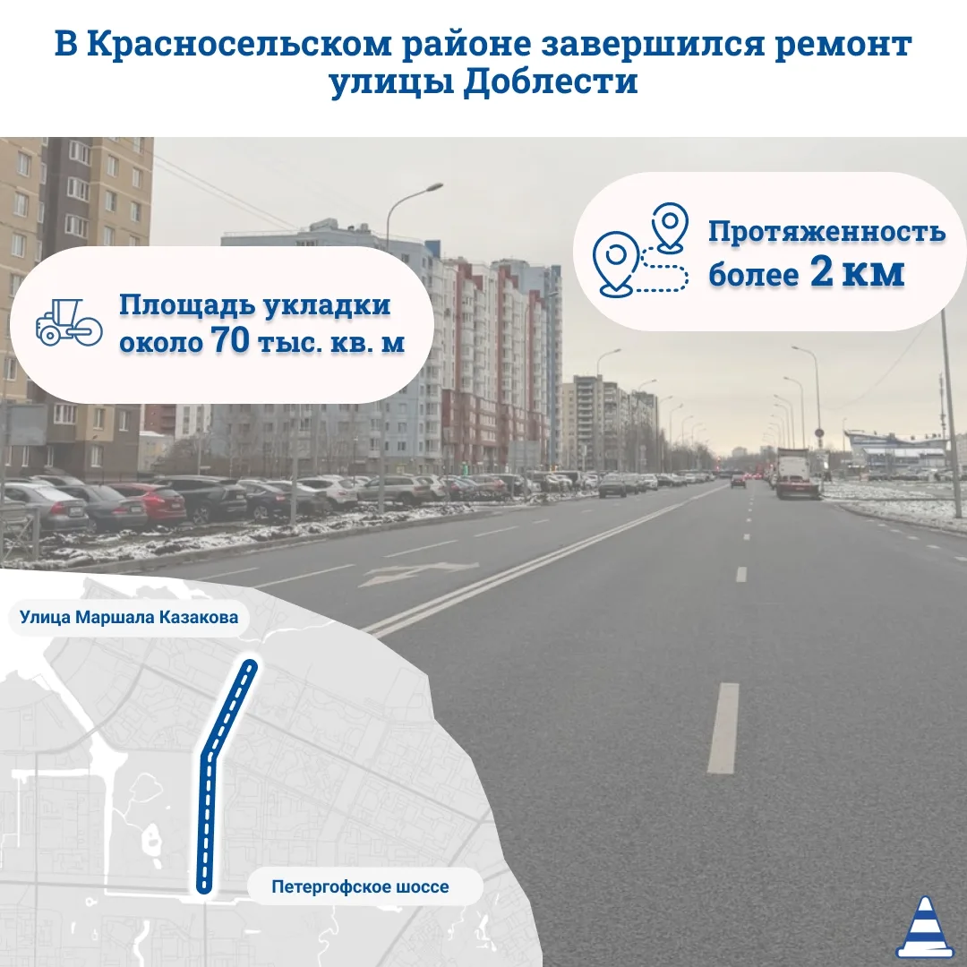 В Красносельском районе завершился ремонт улицы Доблести 🚧