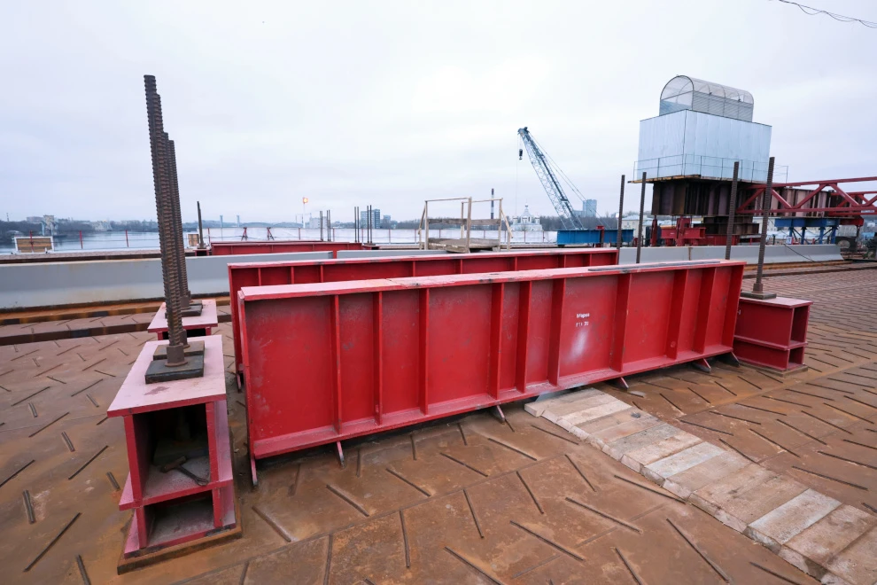 Новый этап работ на новой разводной переправе города - строители АО «Дороги и Мосты» НПС приступили к установке «крыльев» Большого Смоленского моста.