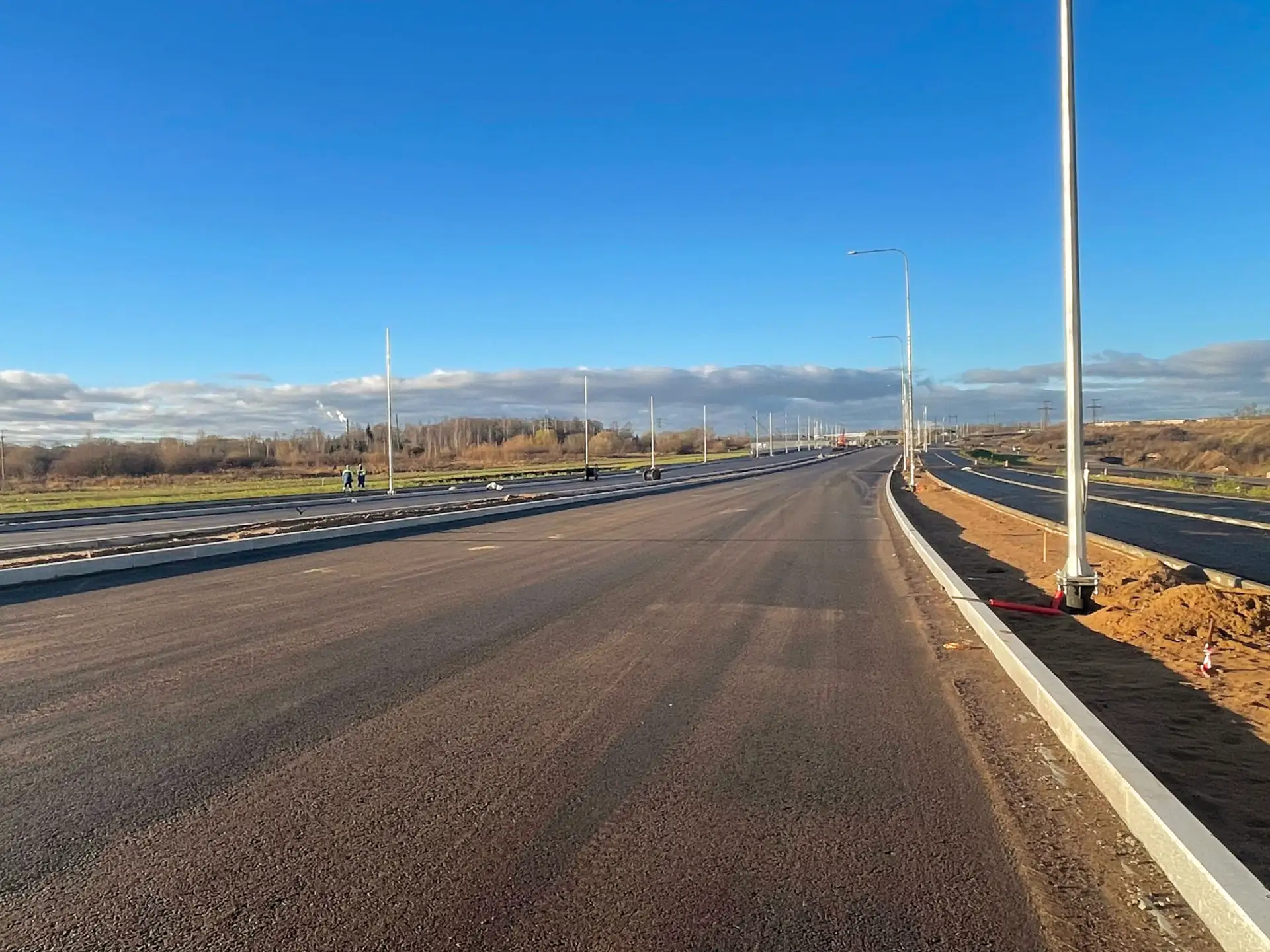 ✅На 70 % готова одна из развязок, которая располагается на пересечении с Петербургским шоссе. Строителям предстоит завершить соединение двух съездов с Петербургским шоссе.
