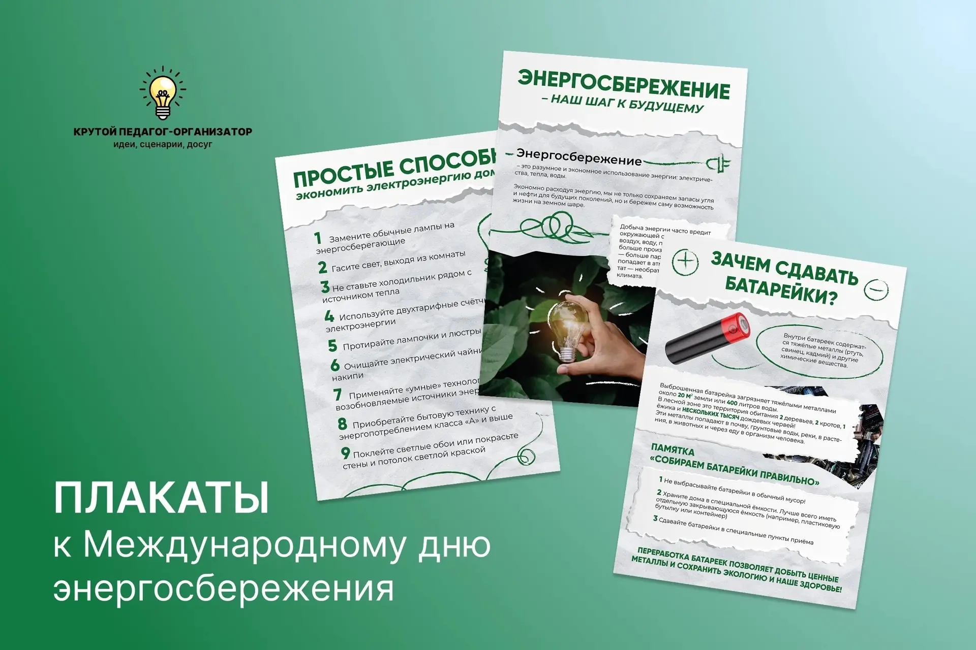 ⚡ Плакаты к Международному дню энергосбережения — авторская разработка дизайнеров «Крутого педагога-организатора»!