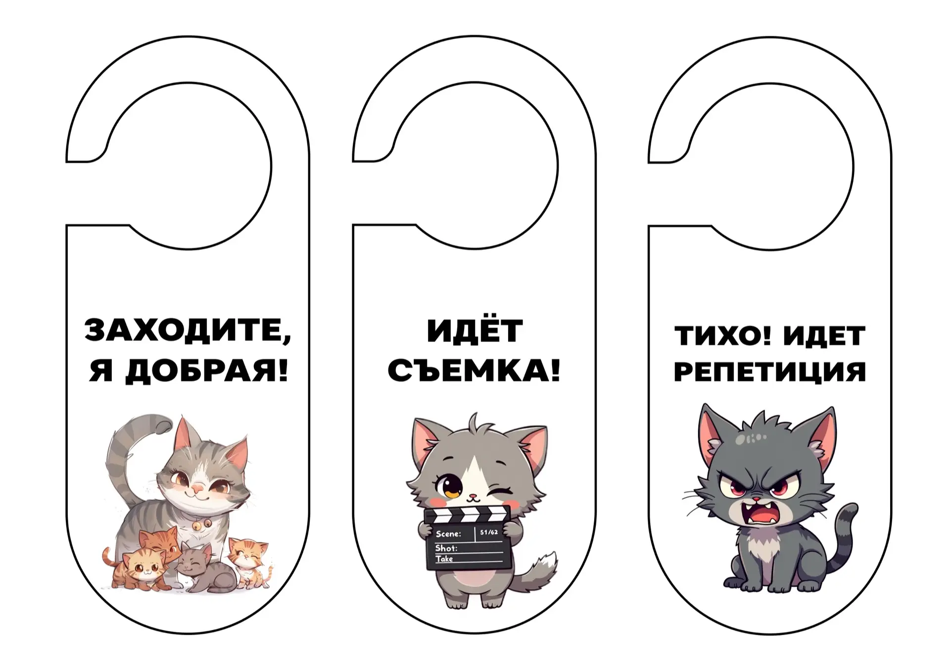 Чтобы предотвратить ситуацию, когда ученик неожиданно заходит в кабинет, ЦДИ или актовый зал во время съёмки или репетиции, мы приготовили для вас авторские предупреждающие таблички на дверь!