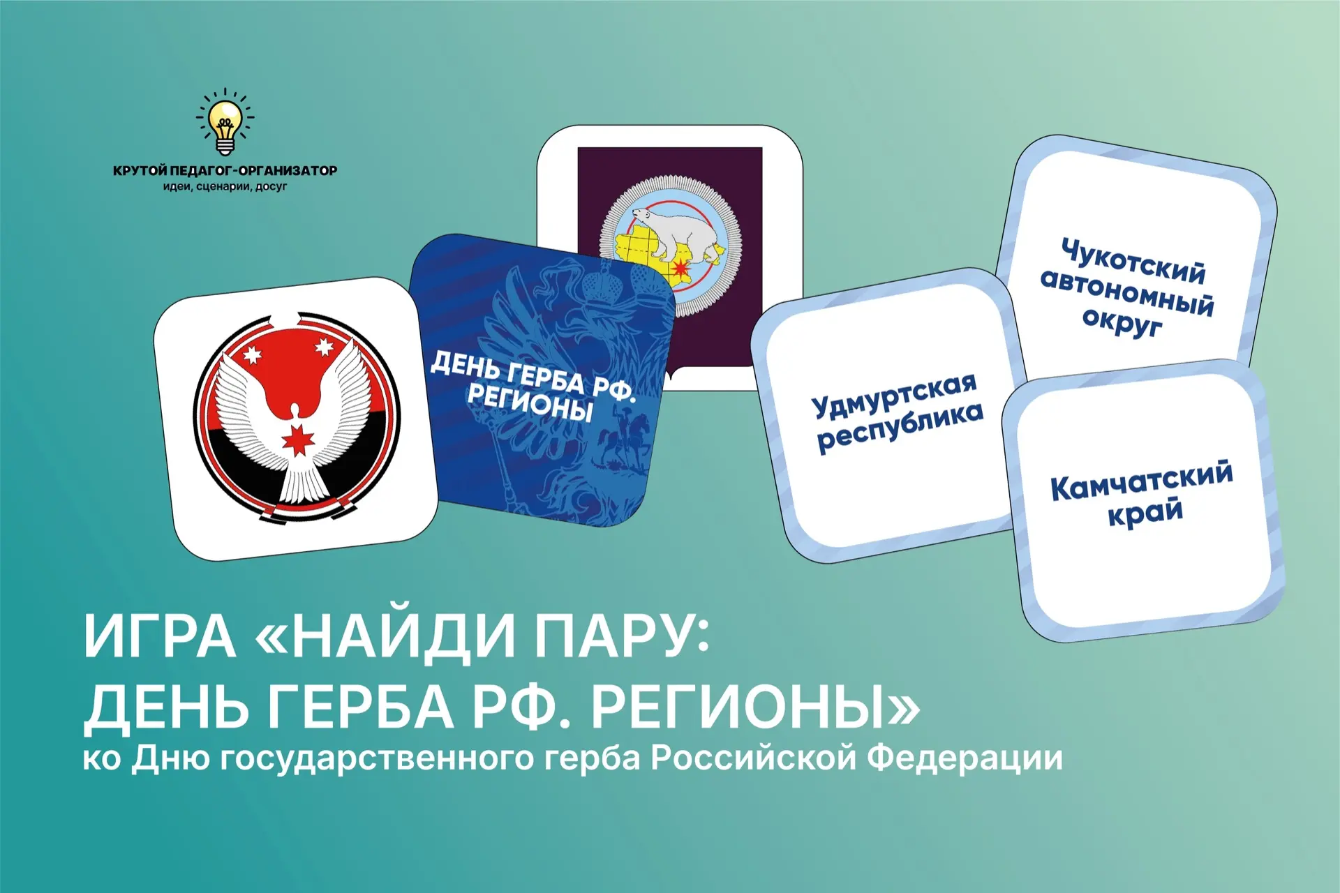 🇷🇺 Игра «Найди пару: День герба РФ. Регионы» ко Дню государственного герба Российской Федерации — авторская разработка дизайнеров «Крутого педагога-организатора»!