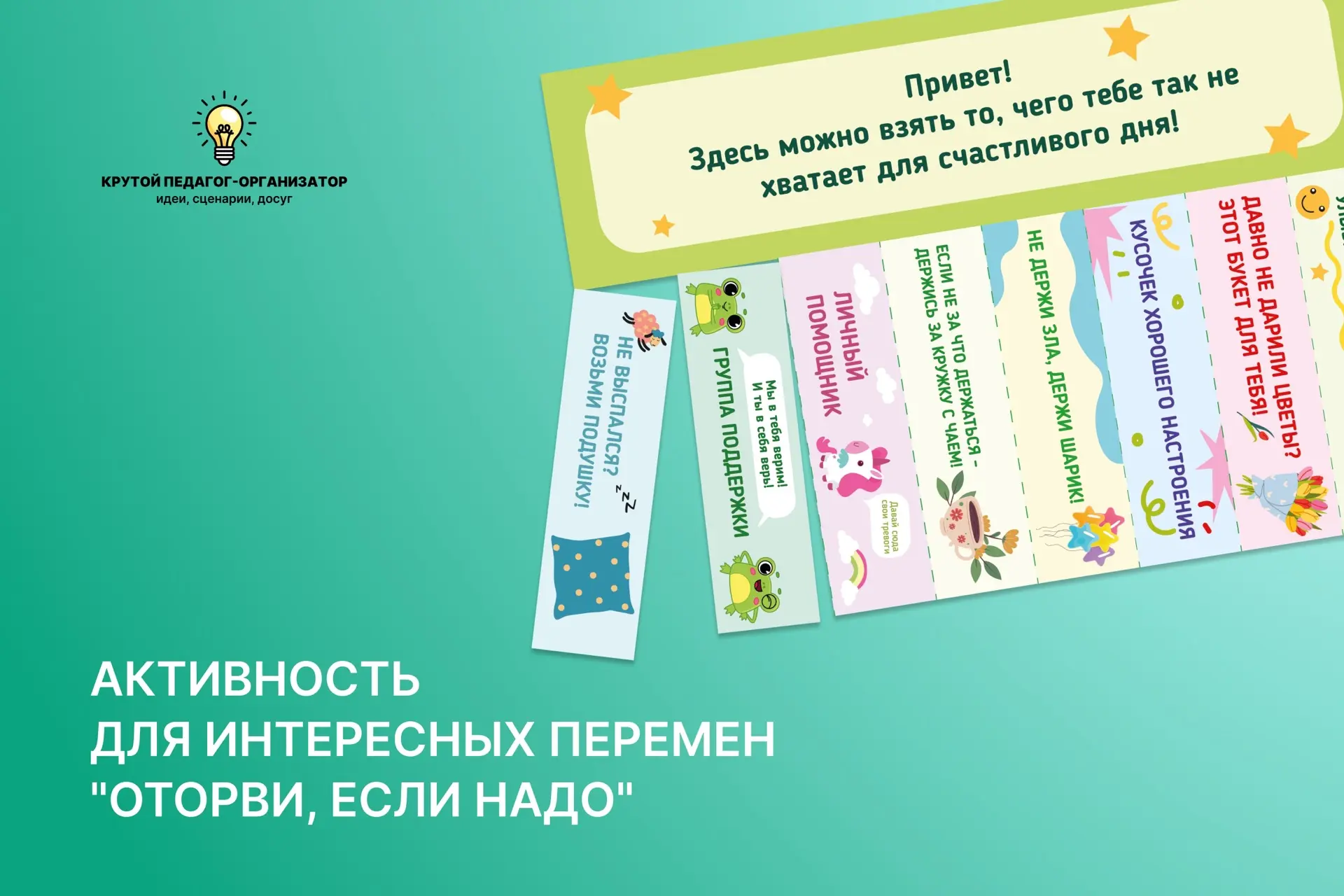 💡 Активность для интересных перемен «Оторви, если надо» — авторская разработка дизайнеров «Крутого педагога-организатора»!