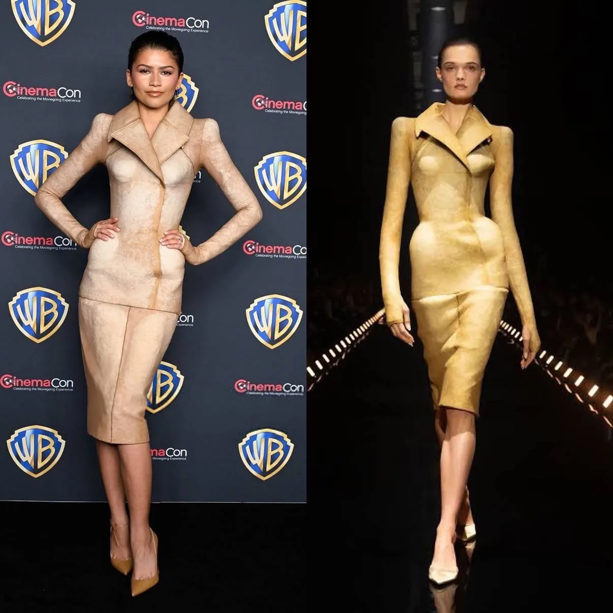 Выбор Зендеи и Лоу Роуча снова пал на Schiaparelli. С костюма как будто сыпется песок, но многим ткань напомнила лаваш, обгоревшую бумагу, намоченный картон и что только не 😜Какие ассоциации у вас?