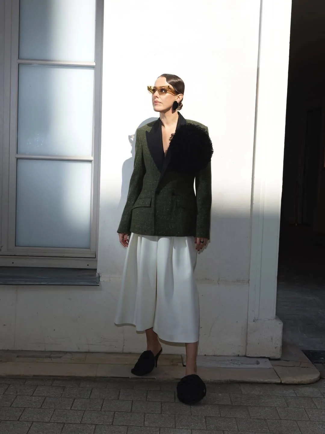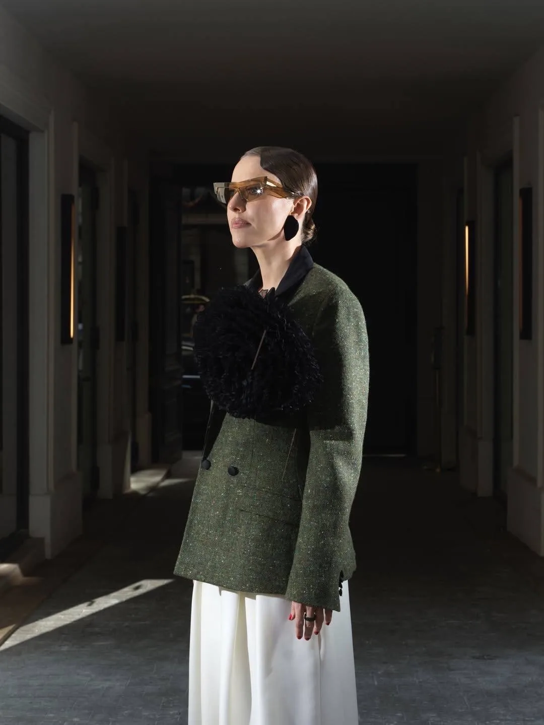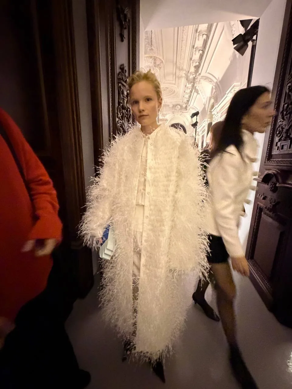 А вещью дня, на которую уже выстроилась виртуальная очередь, точно стала белая перьевая накидка, так гармонично вписавшаяся в коридоры особняка Спиридонова)
