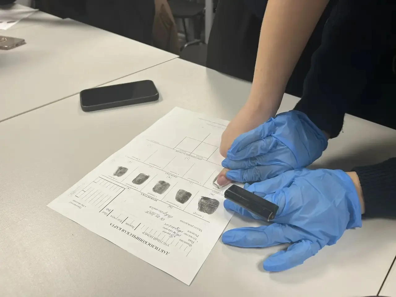 На занятиях курсанты изучают не только правила снятия отпечатков пальцев, но и тонкости работы с ними: от правильного нанесения краски до грамотного оформления дактилокарт. Всё — максимально приближено к реальной практике.