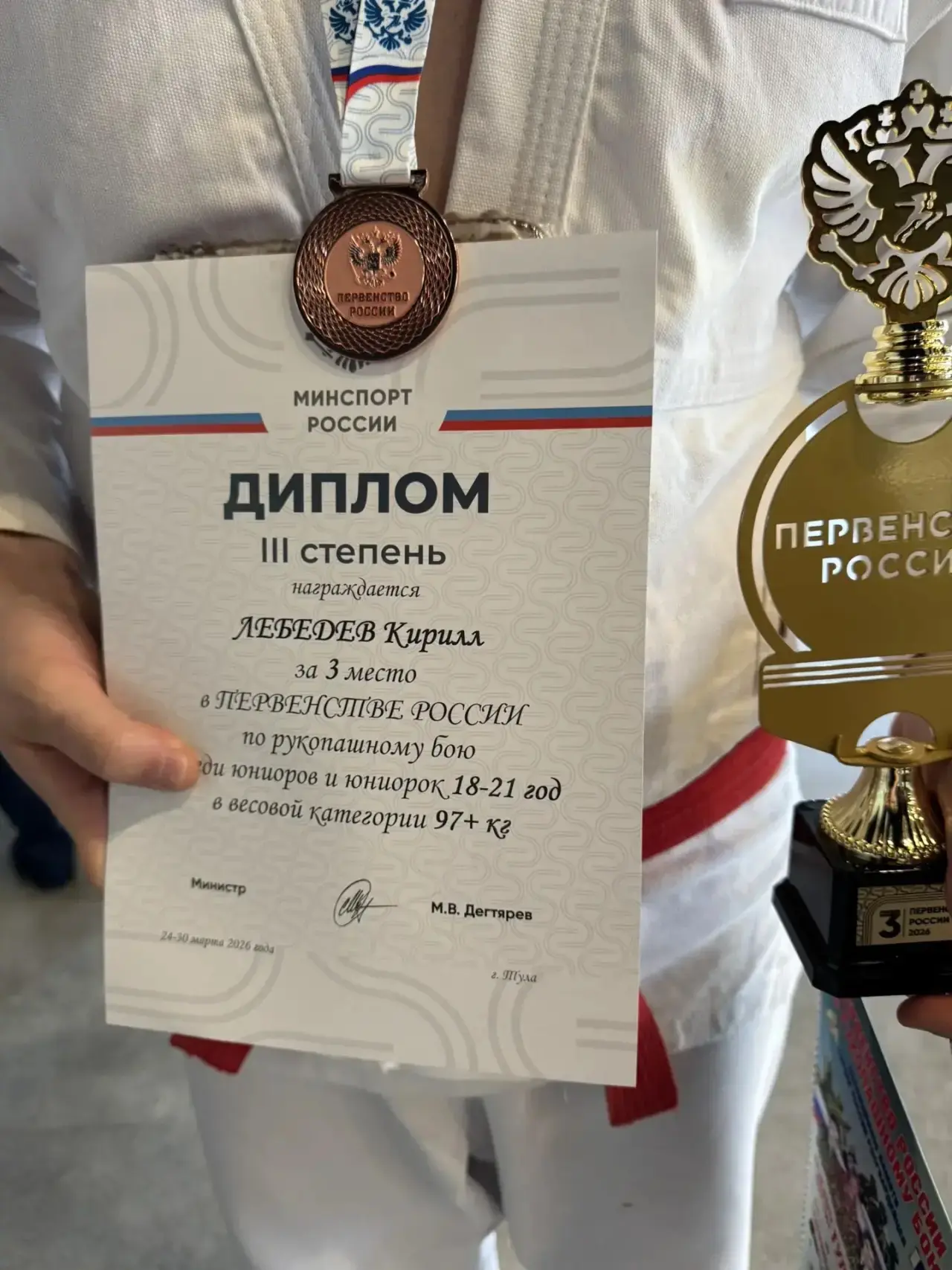 Сейчас он уже выехал из Тулы на Чемпионат России по киокушин карате, который пройдет в Московской области с 31 марта по 6 апреля.
