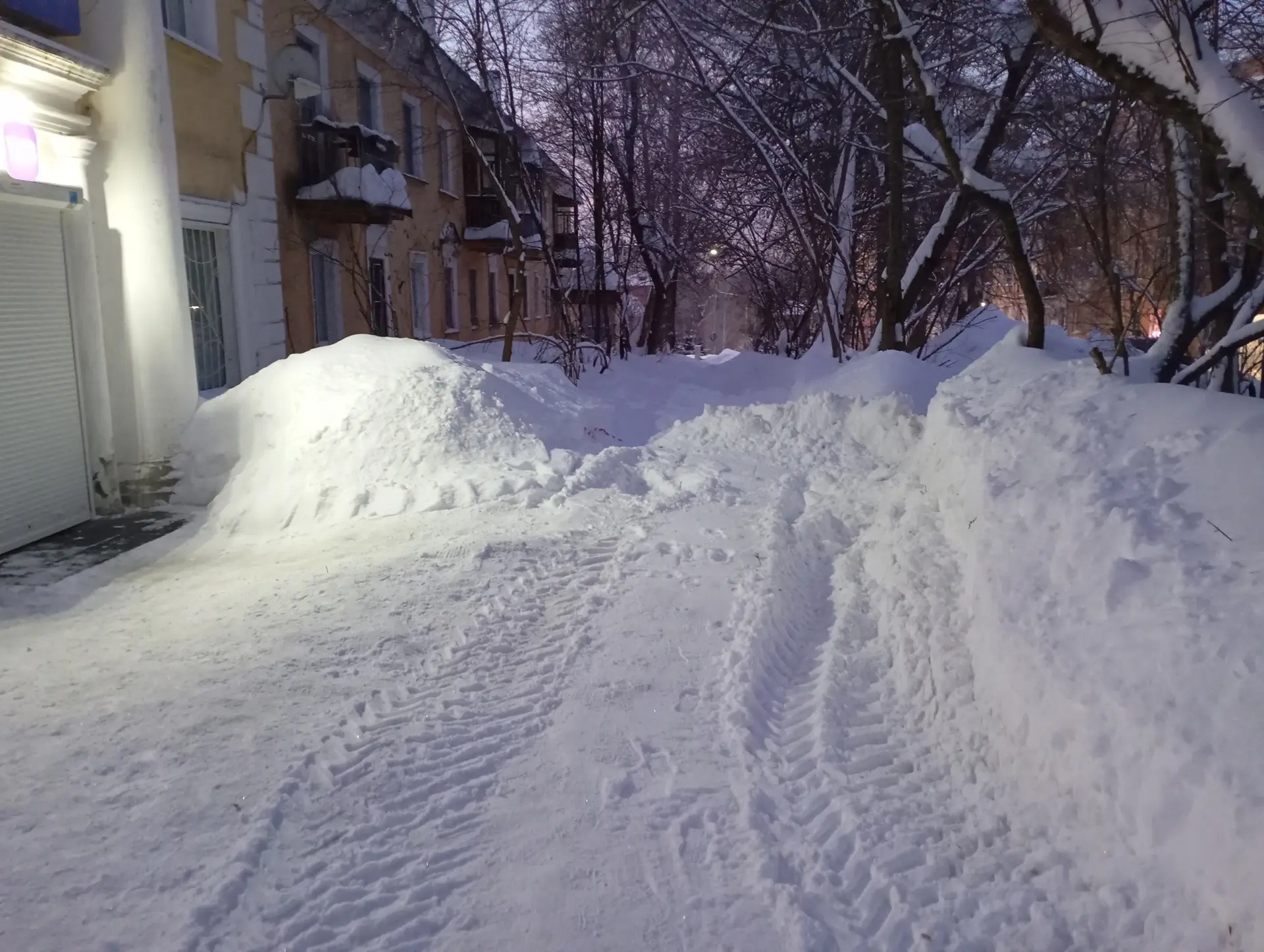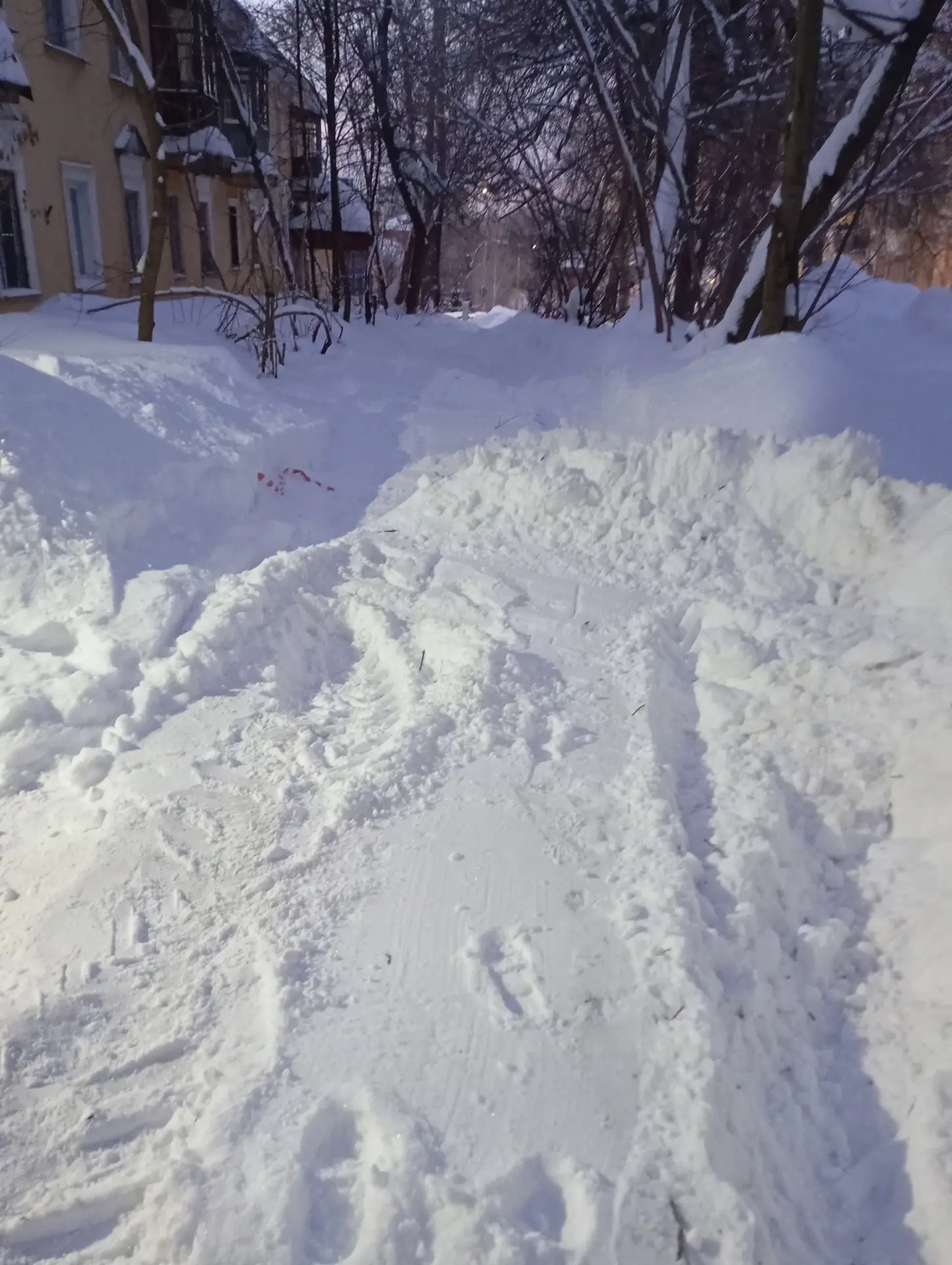 На Пятигорской 20 и 22 трактор нагрёб сугробы на тротуар, полностью перкрыв дорогу для пешеходов.