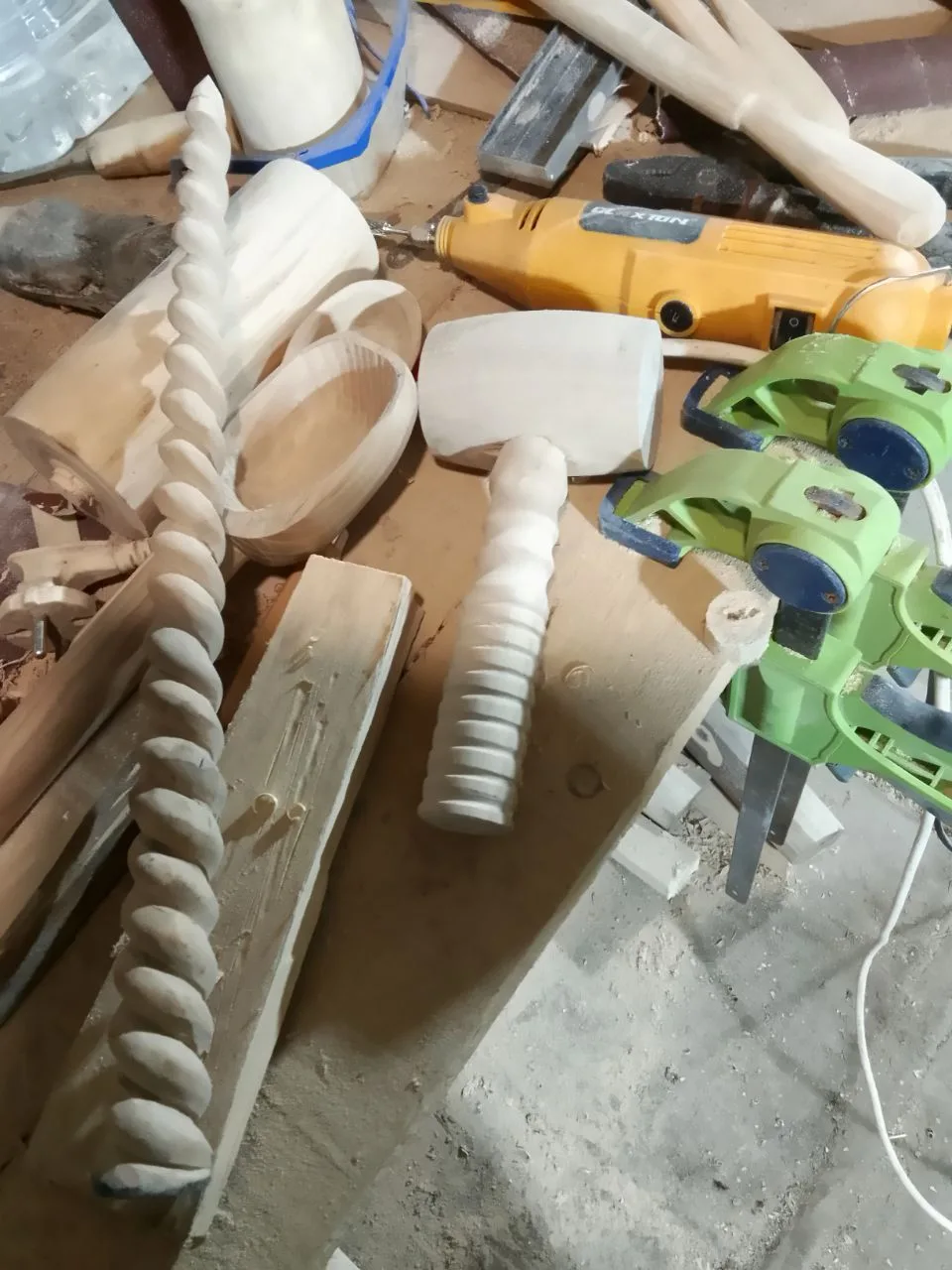 Сегодня на канале — работы Владимира. Человек 15 лет не подходил к дереву, а тут решил напомнить станку, кто тут главный. И вот что стало получаться. На фото изделия из липы, берёзы и ясеня и, судя по всему, большое человеческое терпение. 👍