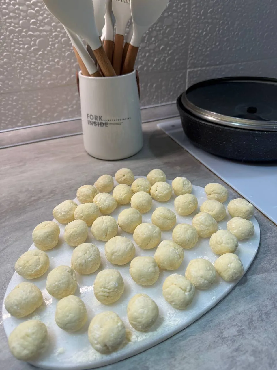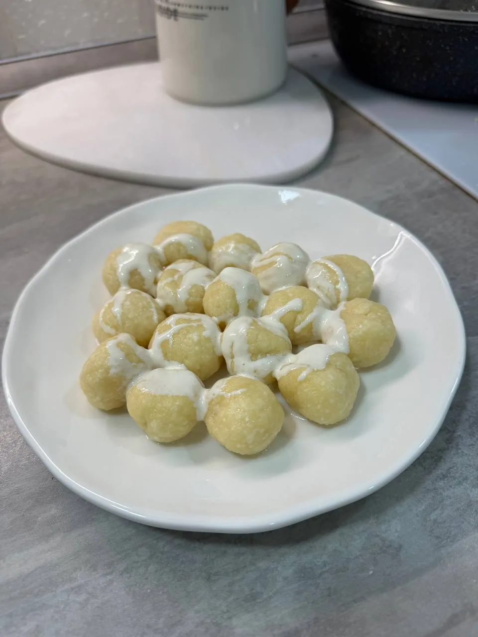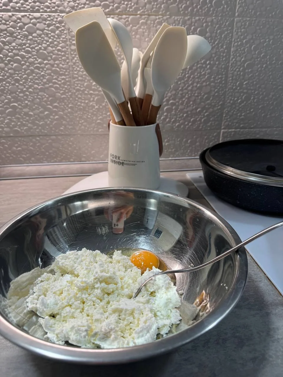- 2 ст л муки, но смотрите по своему творогу, он может быть более влажный, чем у меня и тогда понадобится больше муки