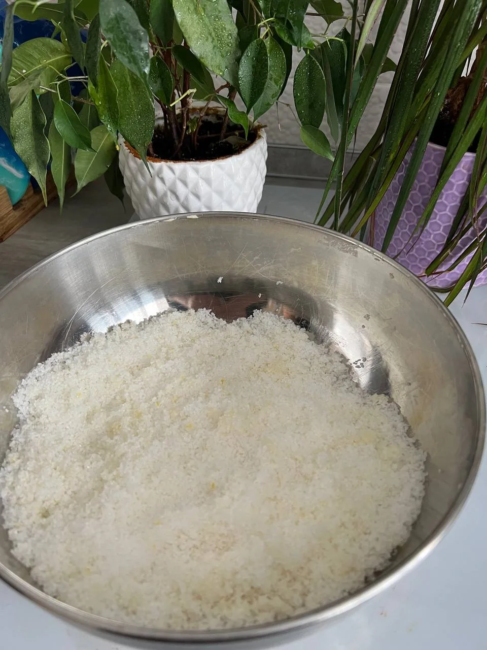 · Мелко порубите укроп и смешайте с солью и сахаром. Если используете цедру, добавьте её тёртую часть (без белой горькой кожицы) и спирт. У меня в этот раз только соль и сахар.