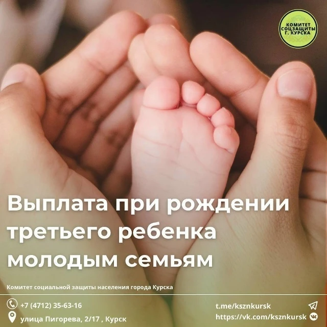 🇷🇺Постановлением Правительства Курской области от 15.04.2025 № 281-пп установлена единовременная выплата на третьего или последующего ребенка, родившихся с 01.01.2025 в молодой семье, проживающей на территории Курской области.