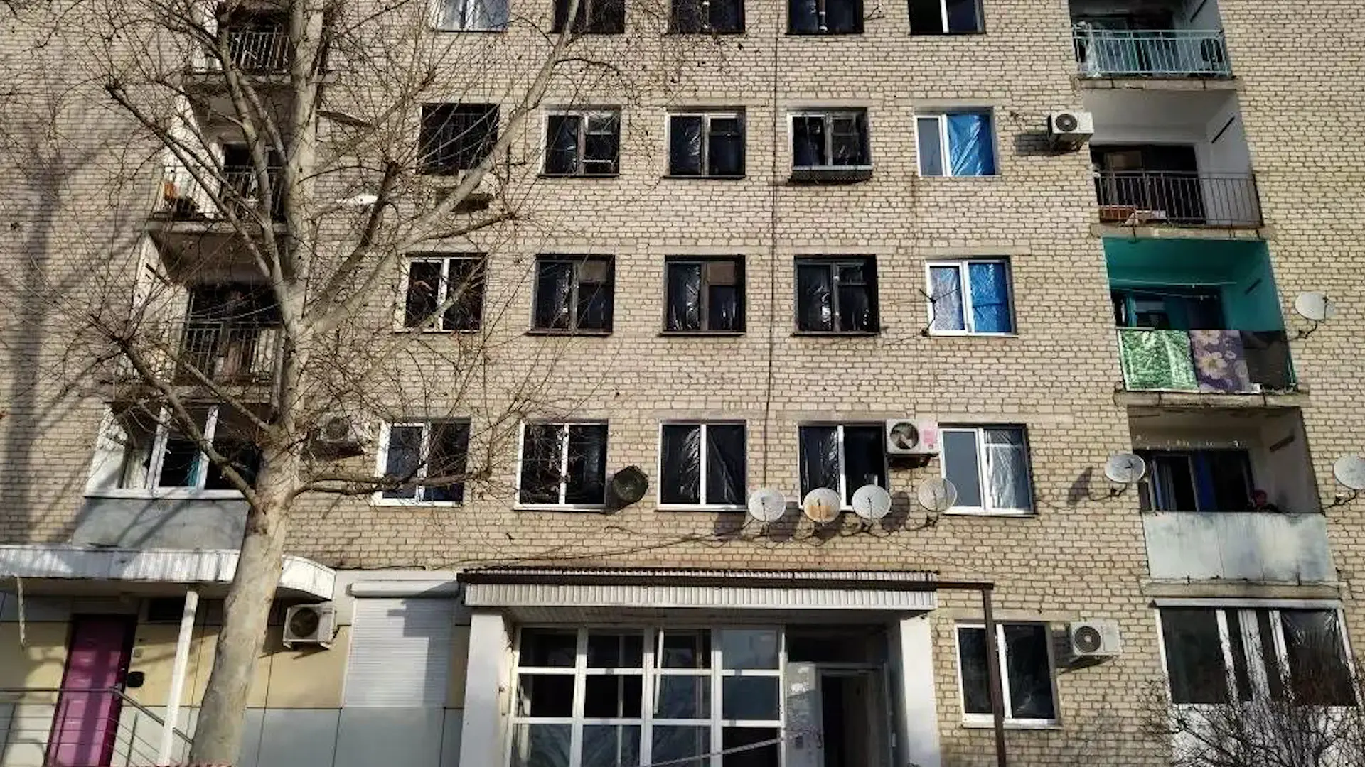 Сегодня жильцам восстановили подачу горячей воды и тепла. Также взрывной волной в многоэтажках выбило окна. Их демонтировали и временно утеплили пленкой.