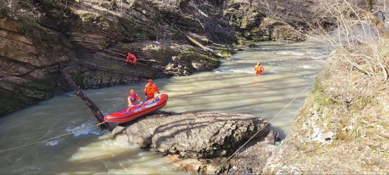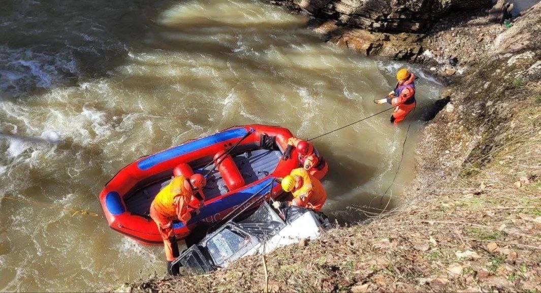 Автомобиль с людьми съехал в реку Сахрай в Майкопском районе. Два человека погибли.