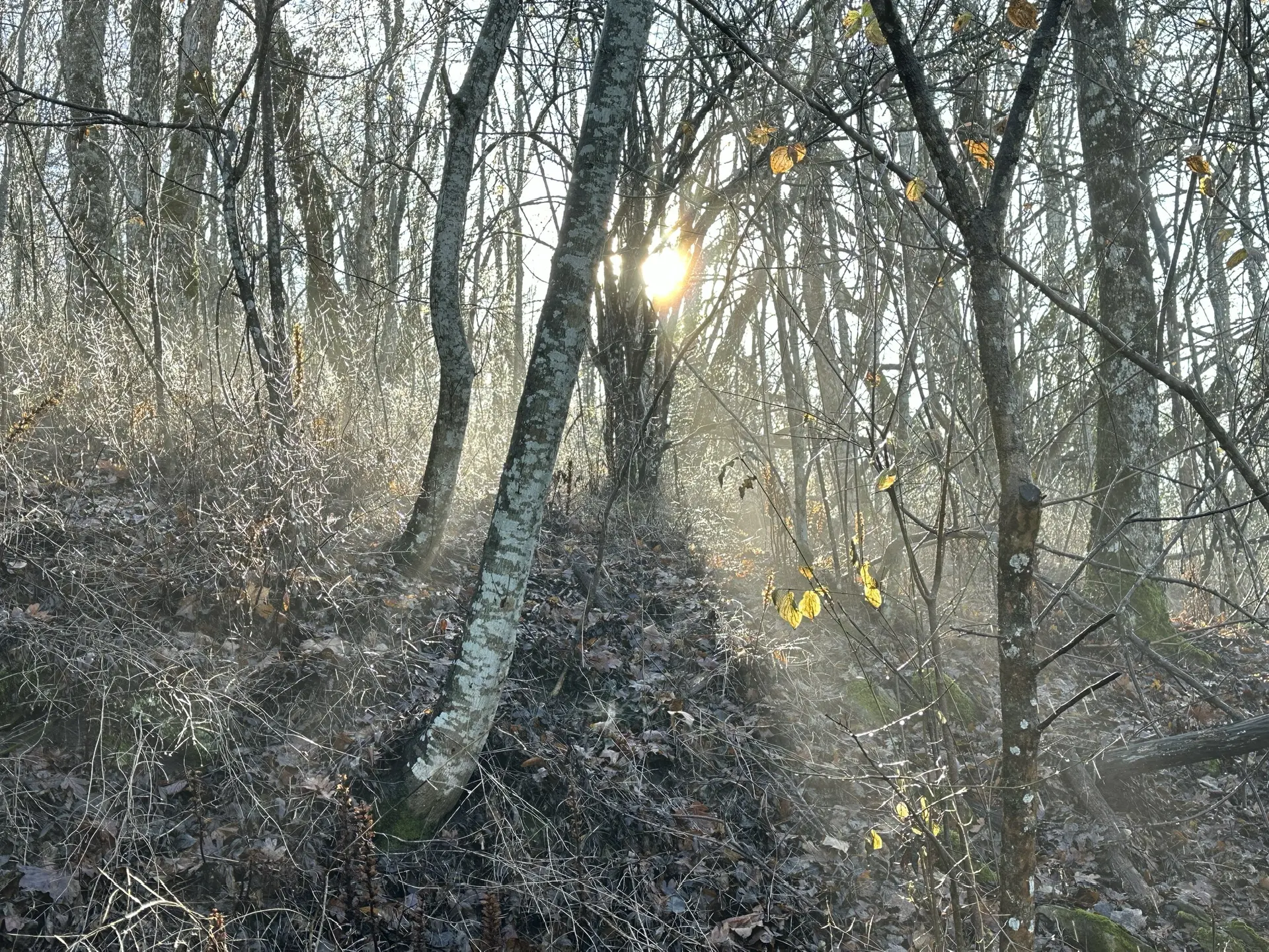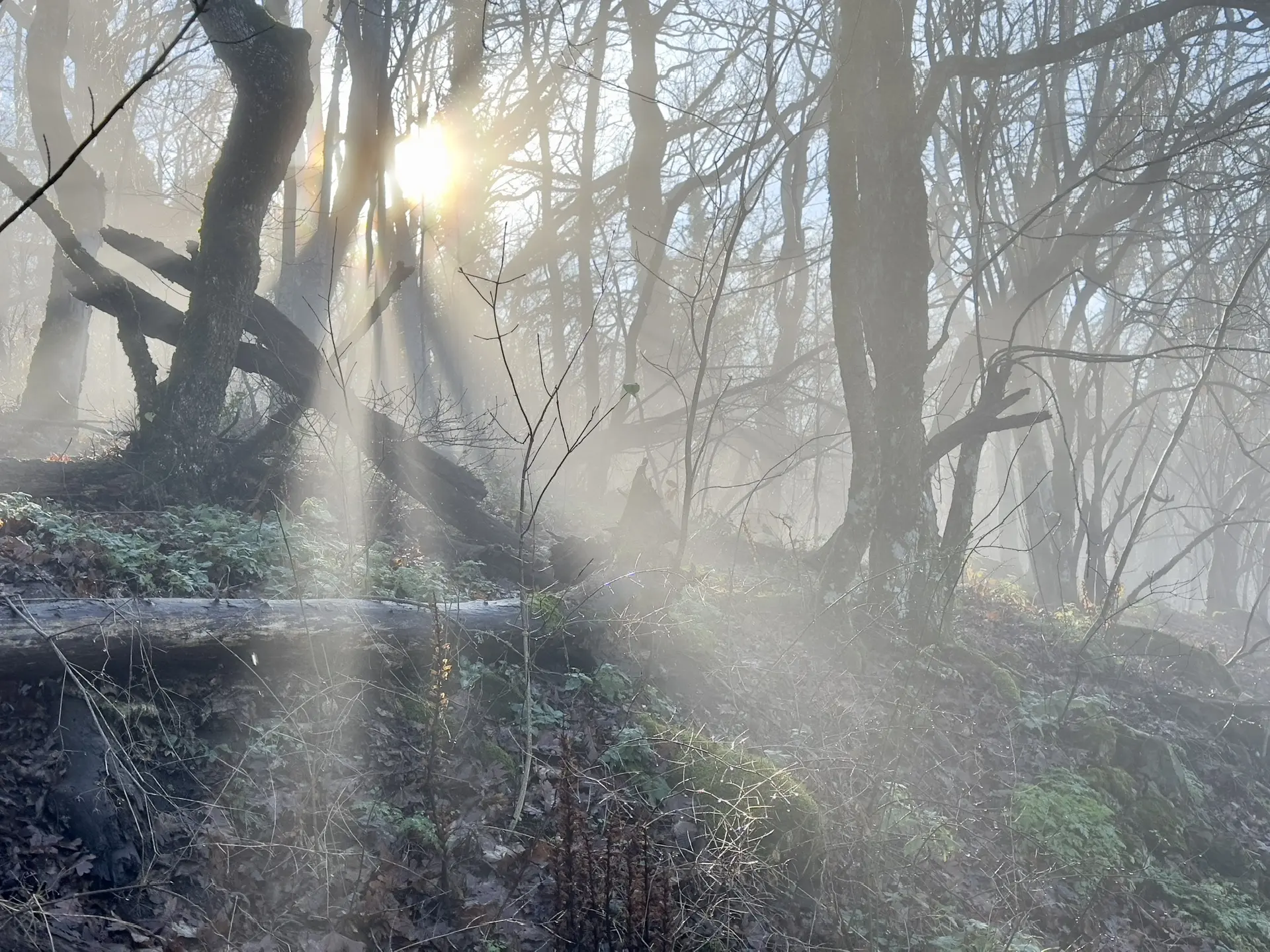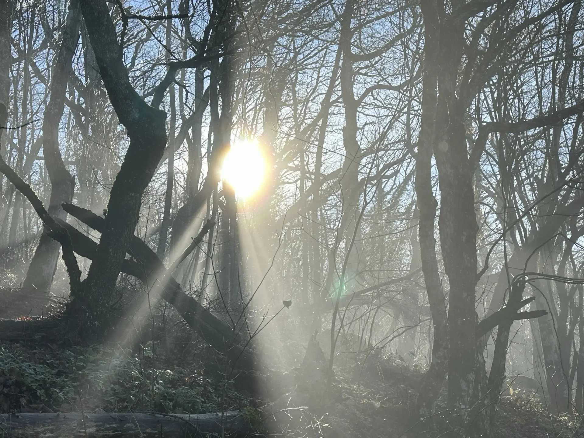Свет прокладывает золотые тропинки в белой дымке леса☀️
