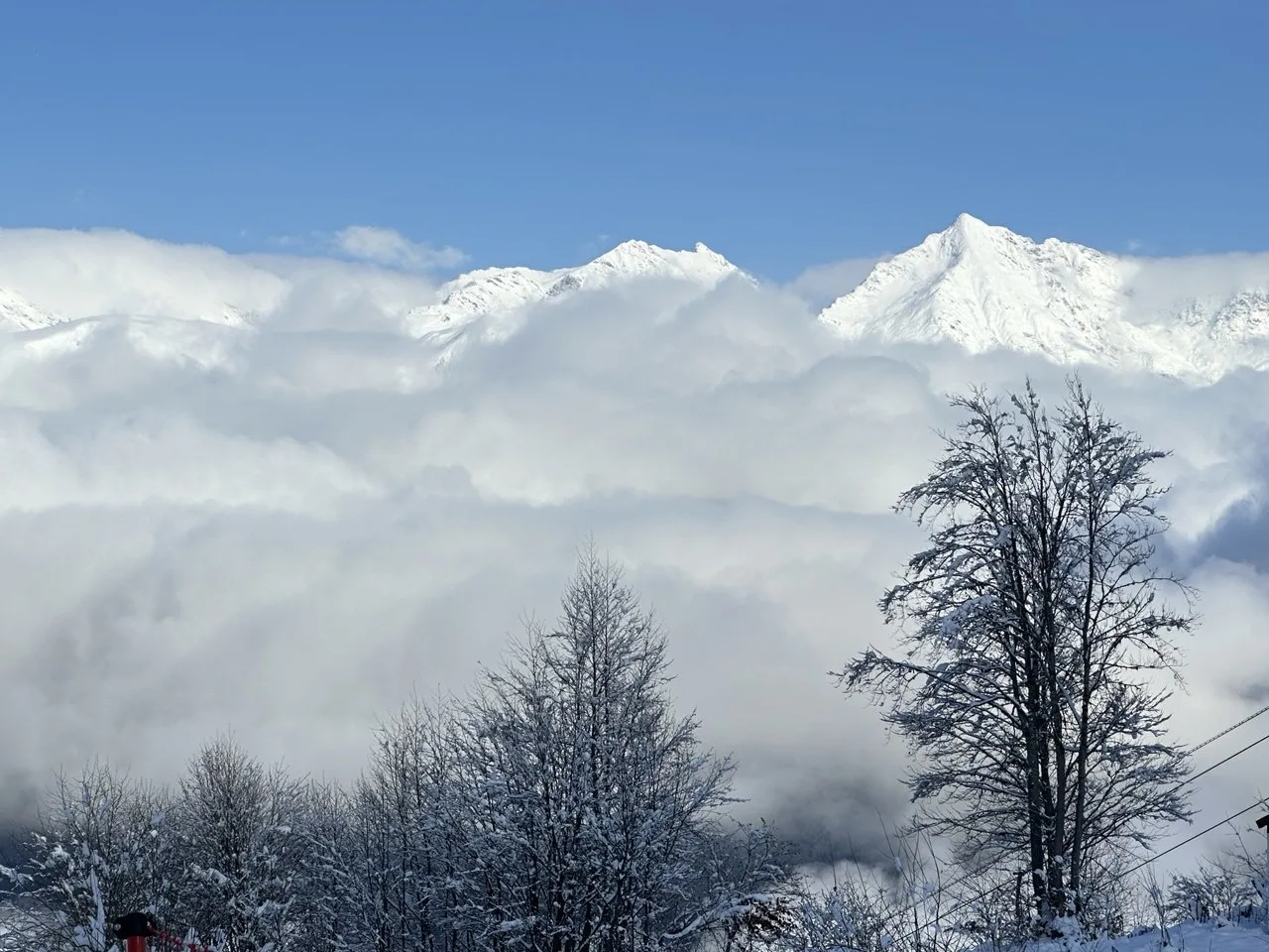 На курорте «Роза Хутор» выросли сугробы – за сутки на отметке 2320 м здесь намело 20 см свежего снега, и высота снежного покрова выросла до 45 см. Сейчас снег продолжает идти, а видимость составляет 50 метров.