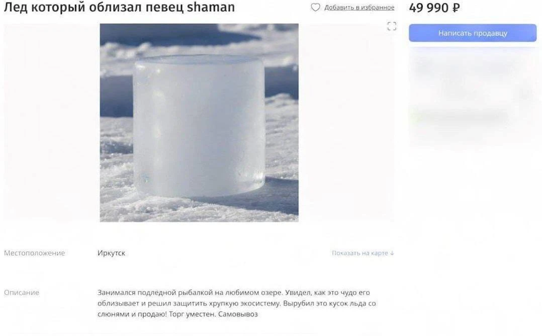 По словам продавца, он решил «защитить экосистему» и теперь продает облизанный лед за 49 990 рублей.