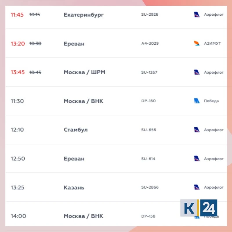 ✈️ 6 рейсов задерживаются в аэропорту Краснодара — по 3 на вылет и на прилет.